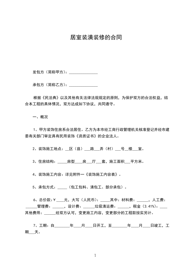 2、装饰施工地点:__区(县)___路___弄(村)___号__楼___室。