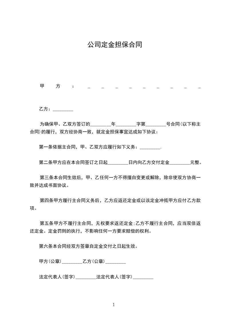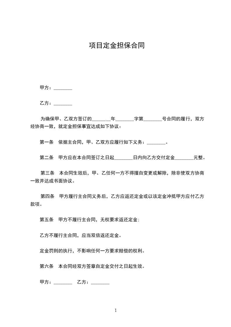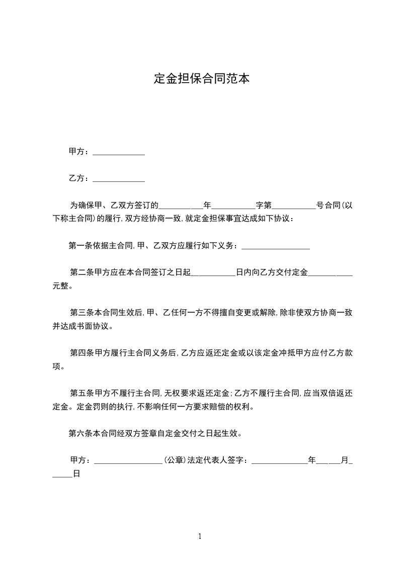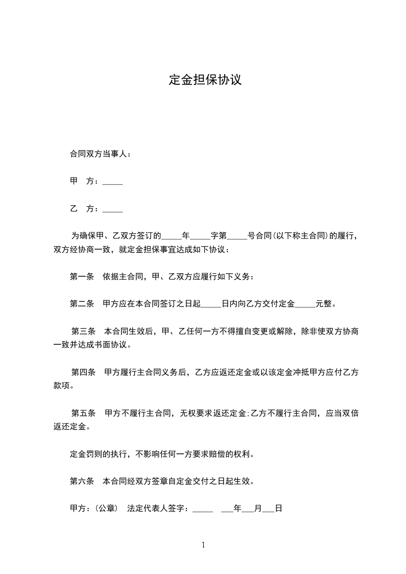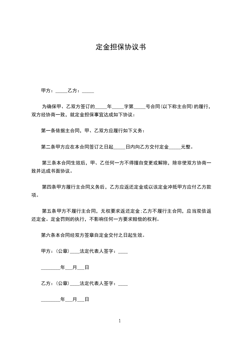 为确保甲、乙双方签订的___________年___________字第___________号合同(以下称主合同)的履行,双方经协商一致,就定金担保事宜达成如下协议: