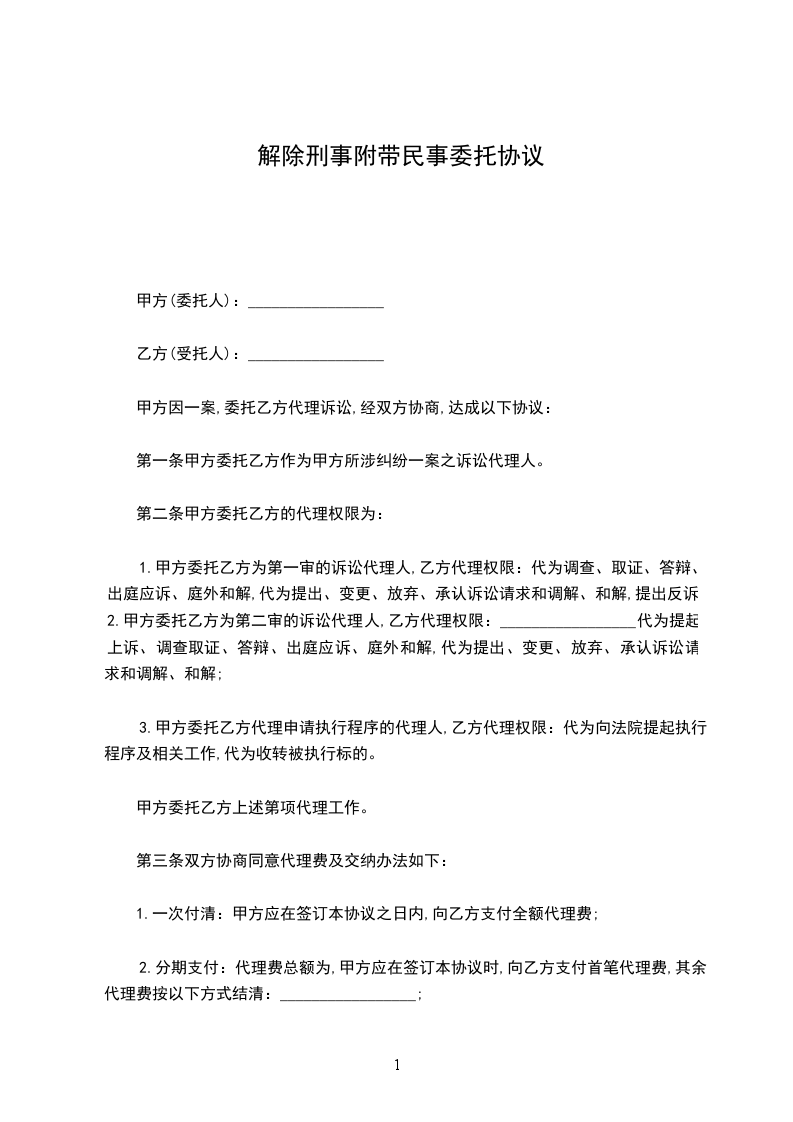 第一条甲方委托乙方作为甲方所涉纠纷一案之诉讼代理人。