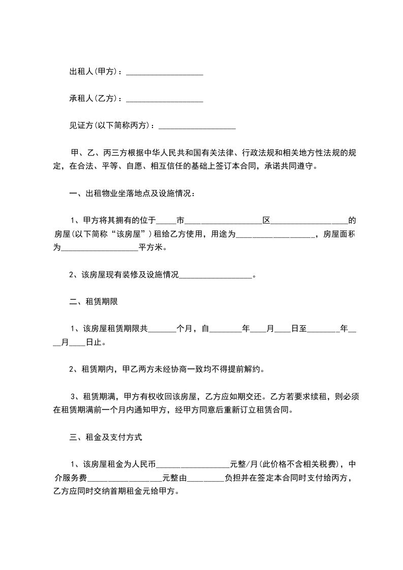 2.房屋租金:每月_____元人民币;