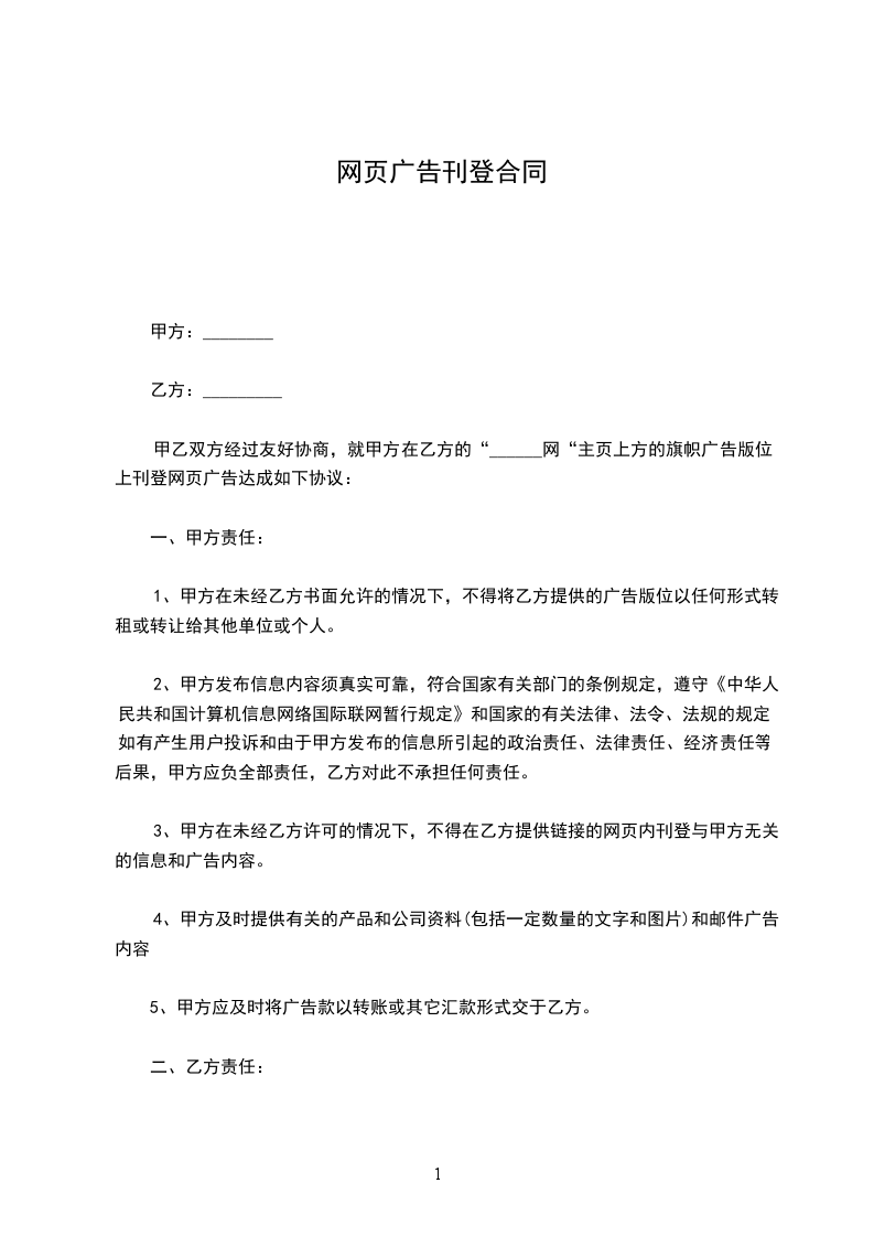 7.本合同自双方签属盖章日起生效至发布日期结束日中止,如有违约另一方有权终止合同;