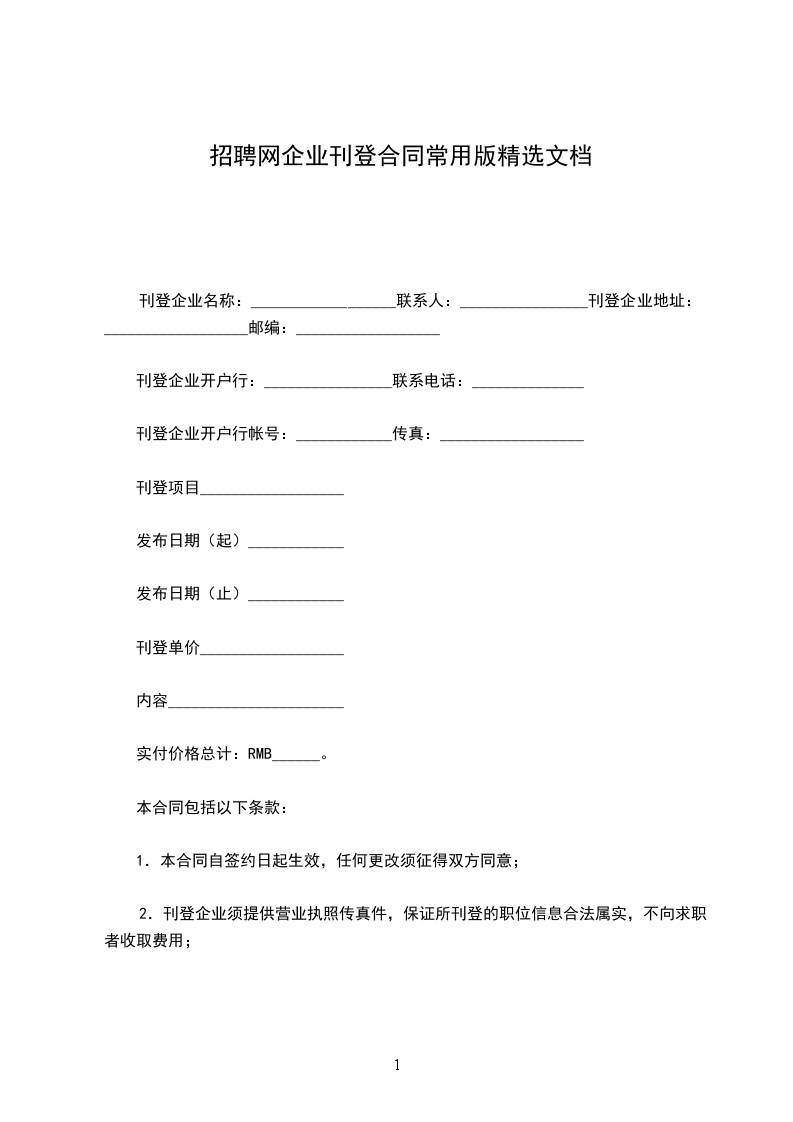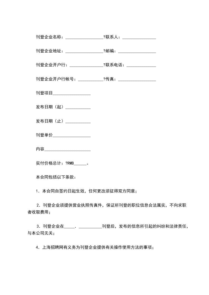 刊登企业开户行帐号:____________?传真:__________________