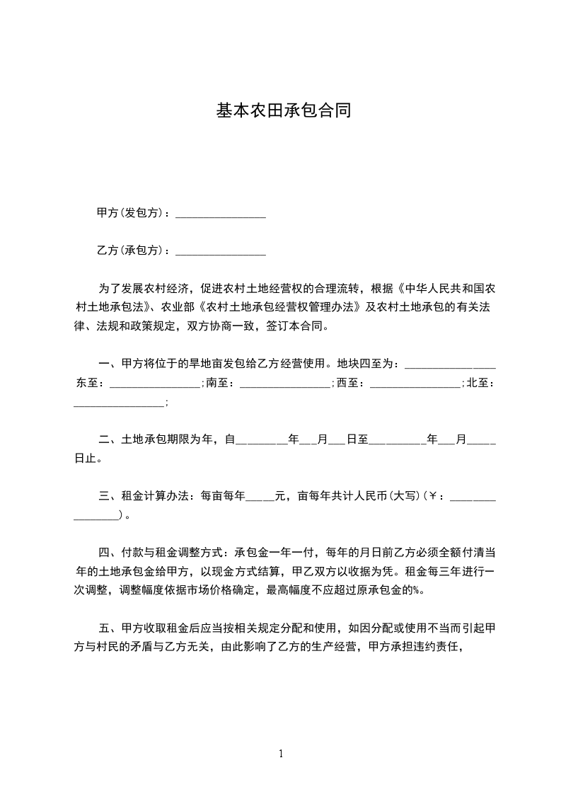 为了发展农村经济,促进农村土地经营权的合理流转,根据《中华人民共和国农村土地承包法》、农业部《农村土地承包经营权管理办法》及农村土地承包的有关法律、法规和政策规定,双方协商一致,签订本合同。