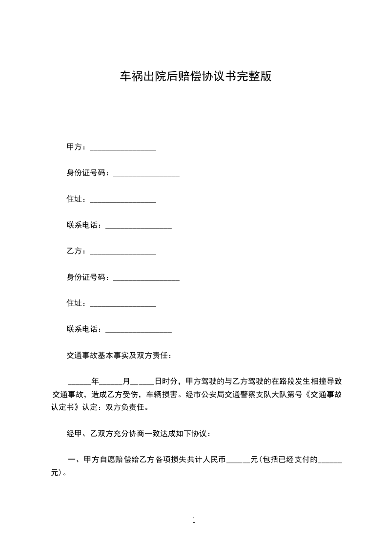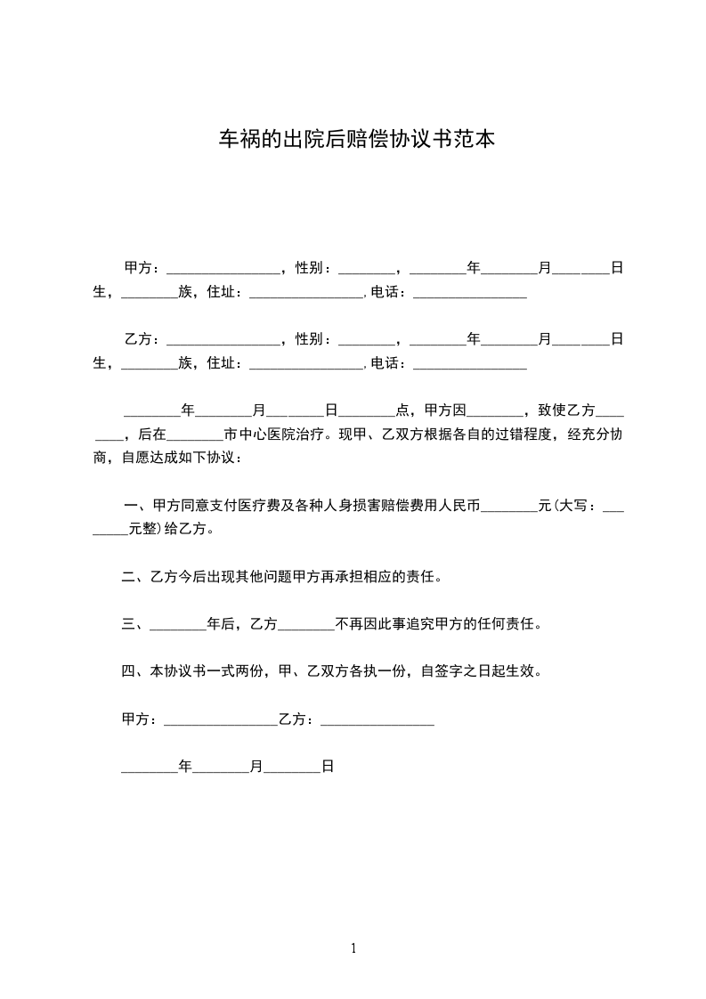 甲方:________________,性别___________,族别___________,出生于___________年___________月___________日,籍贯___________,住址___________,身份证号:________________.