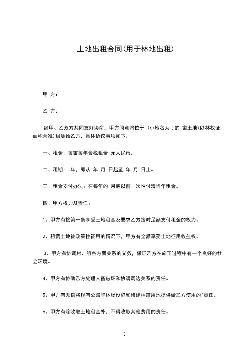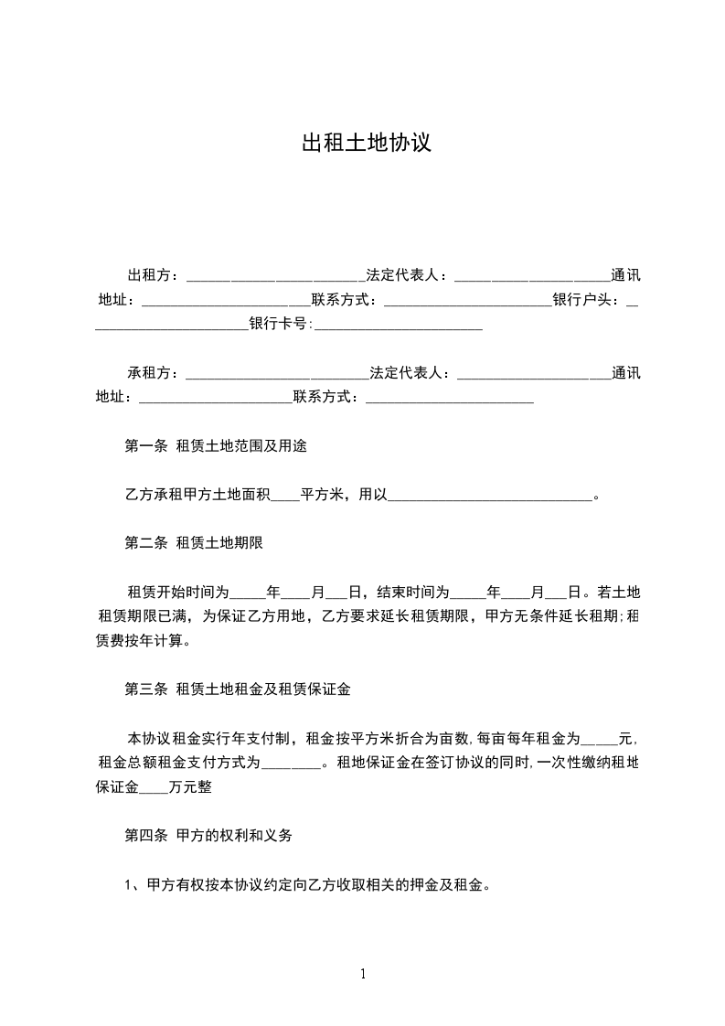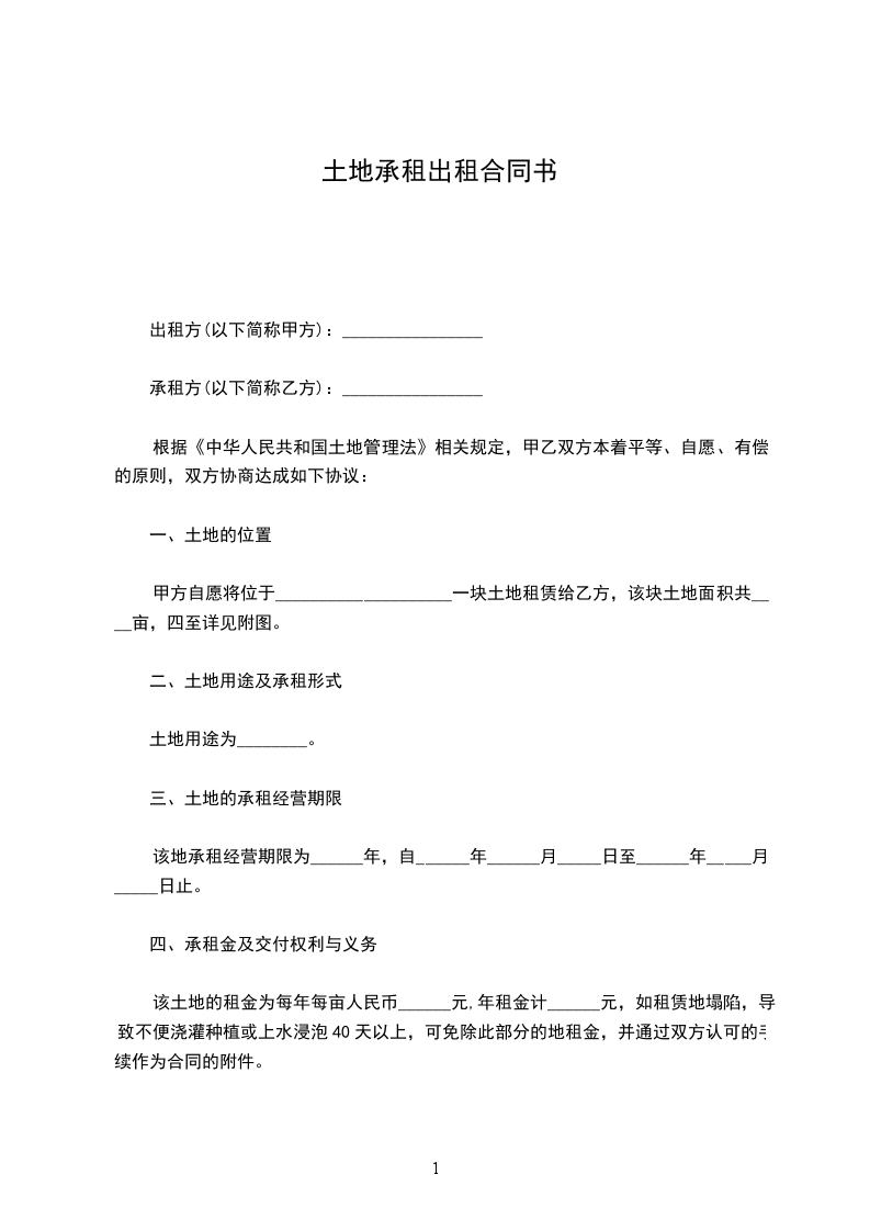 甲方将________所属土地约________亩的土地出租给乙方使用(租地面积以实际丈量为准)
