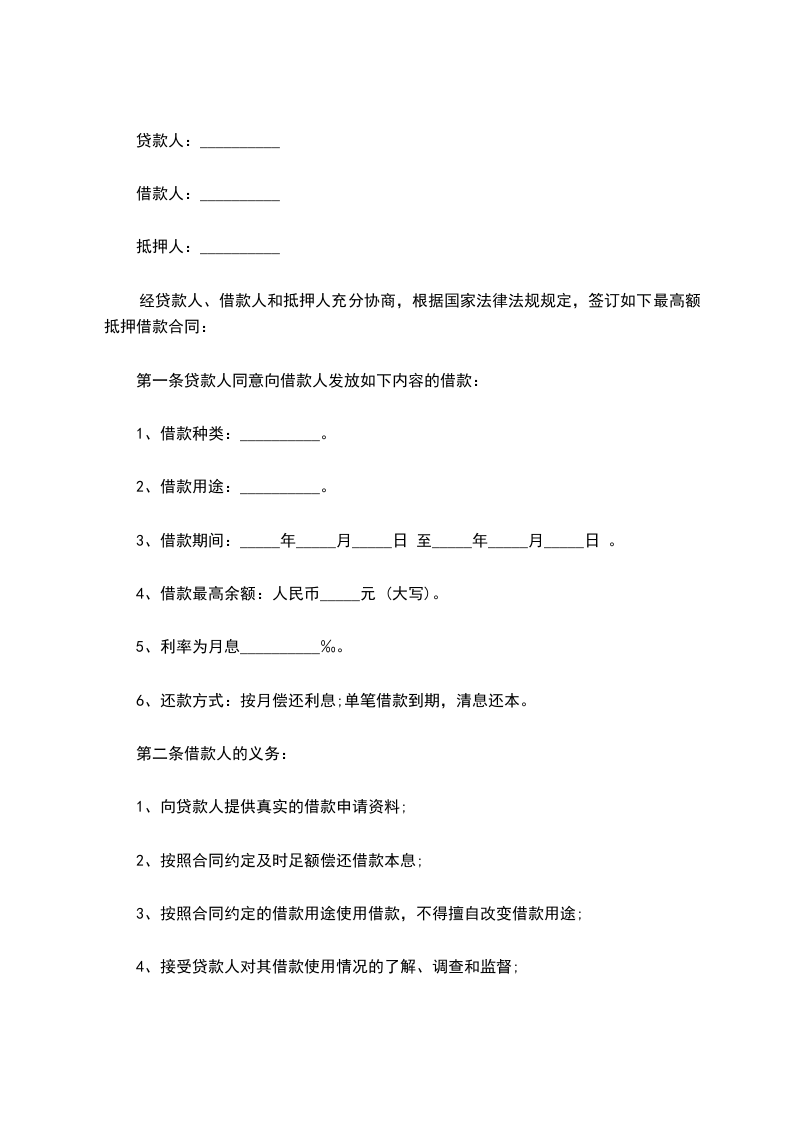 第二条抵押担保范围:_________________本合同担保范围限于主合同项下甲方向乙方借款总额人民币