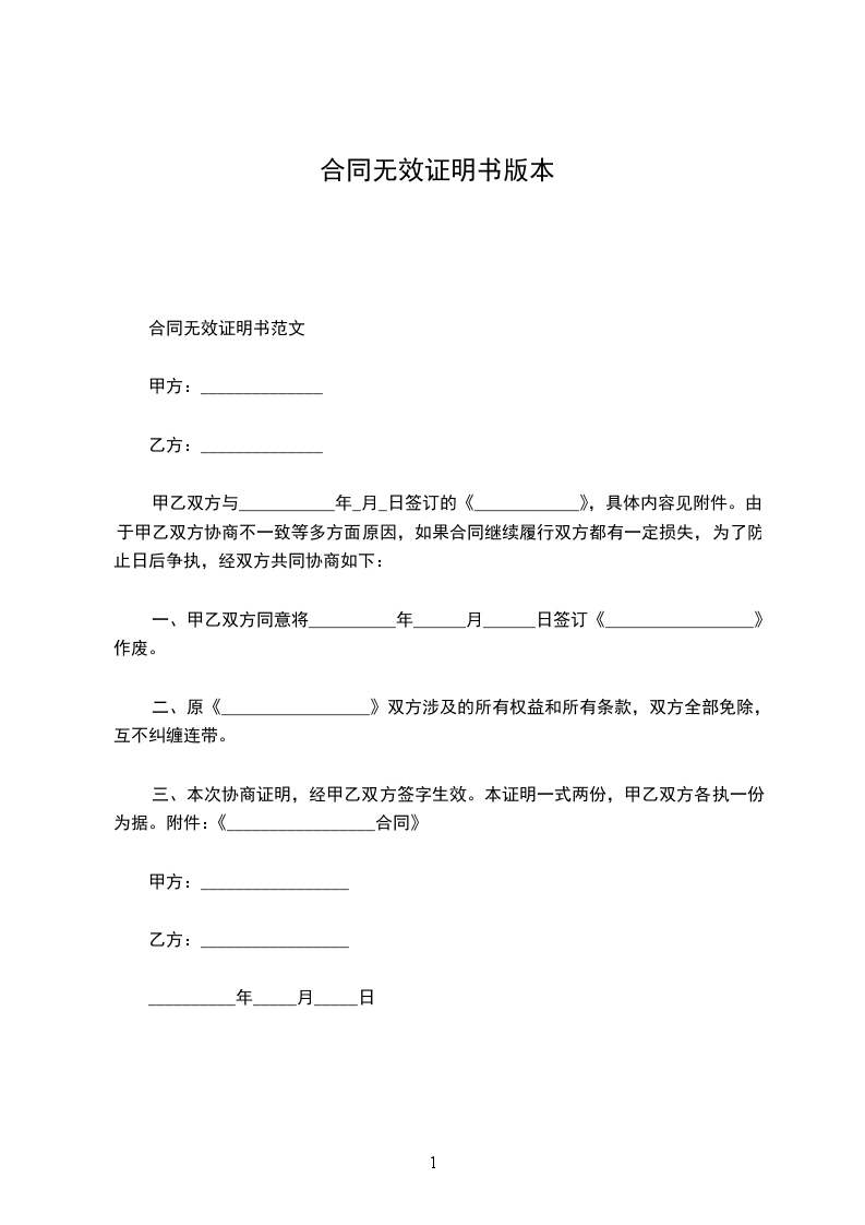 一、甲乙双方同意将__________年 ___________ 月 ___________ 日签订《 ___________ 》作废。