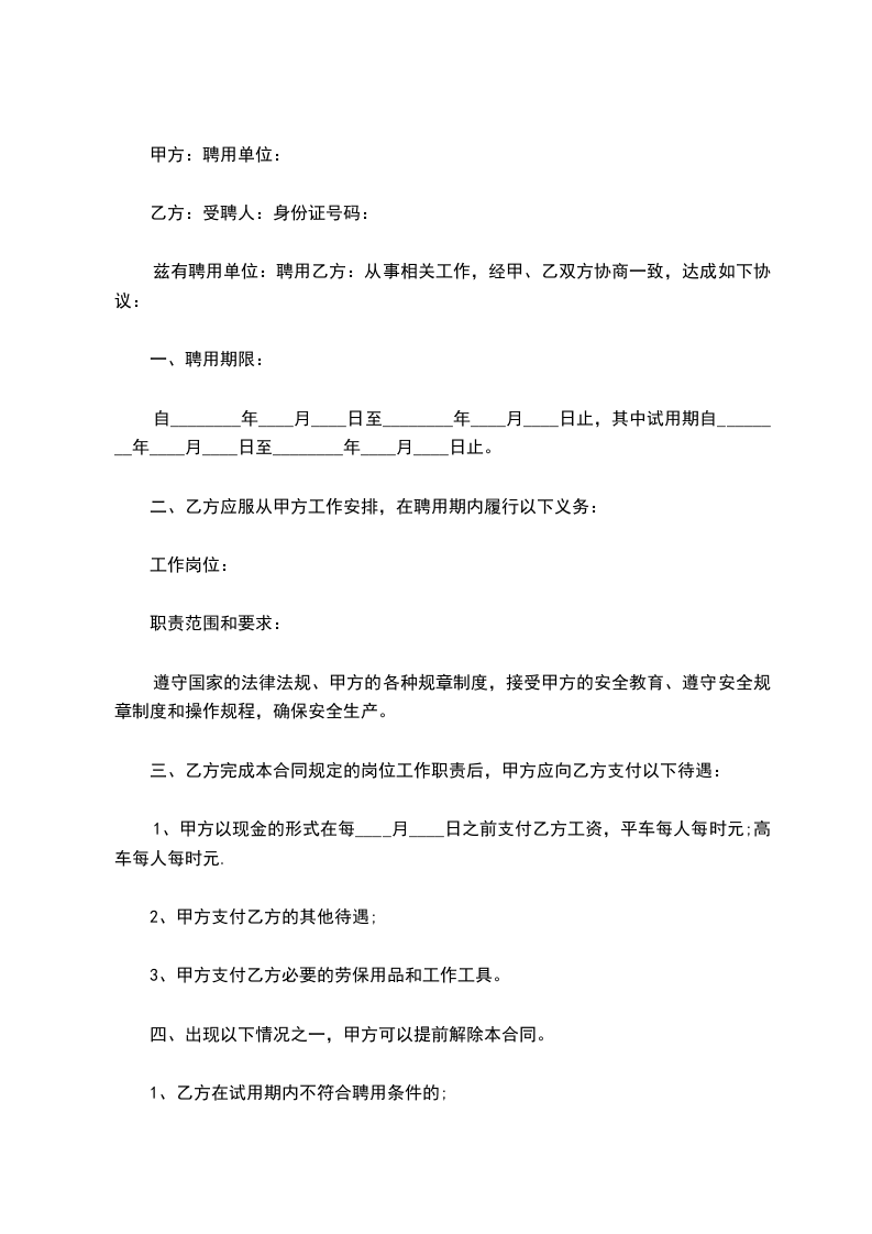 5、乙方须确保自身的健康.无疾病史,能适应当地的工作环境及气侯环境。