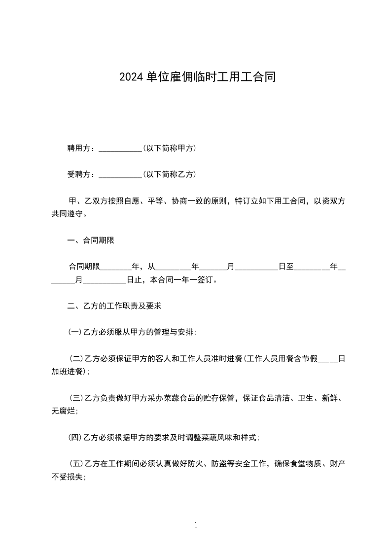 1、甲方按工地标准提供乙方住宿.卫生设施.生活设施等,甲方在工程现场向【雇佣工人合同范本】乙方免费提供一日三餐的集体伙食。
