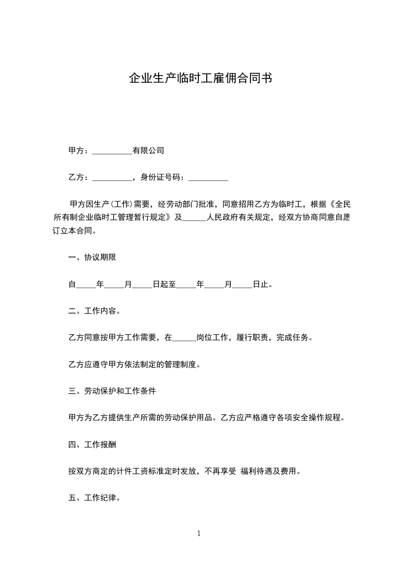 5、甲方负责向乙方提供必要的个人劳保用品。