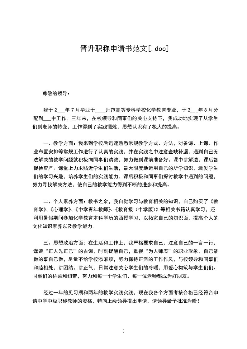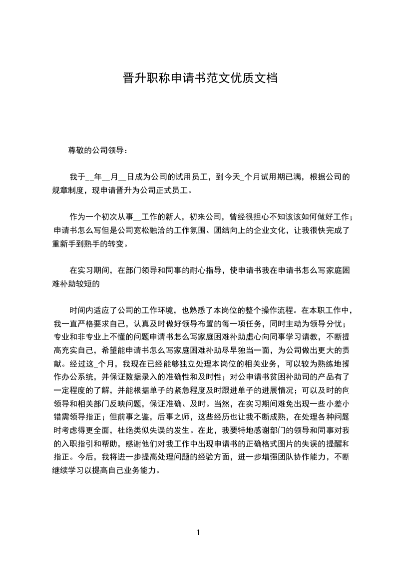 本人于_______年_______月_______日成为公司的试用员工,到今天个月试用期已满,根据公司的规章制度,现申请晋升为公司正式员工。
