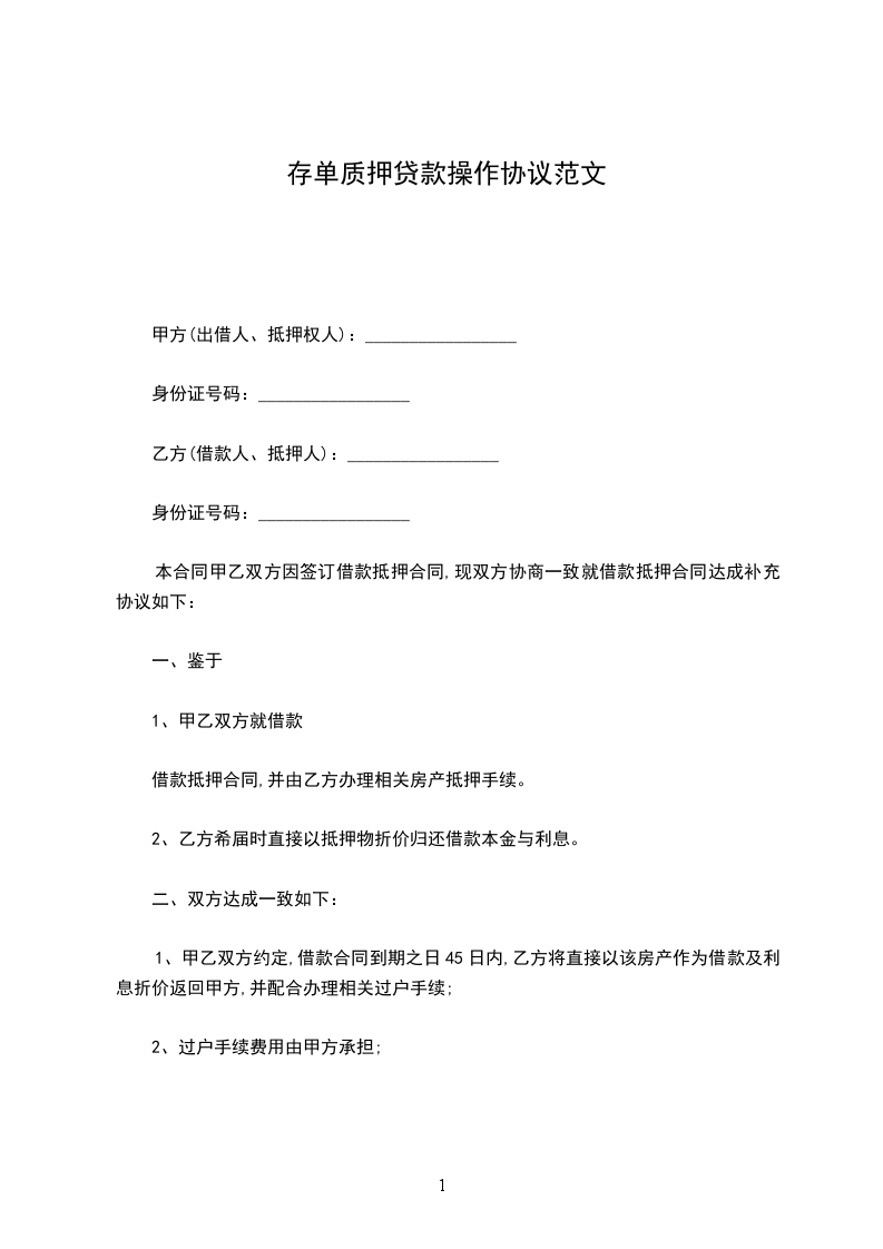 1、甲乙双方约定,借款合同到期之日45日内,乙方将直接以该房产作为借款及利息折价返回甲方,并配合办理相关过户手续;