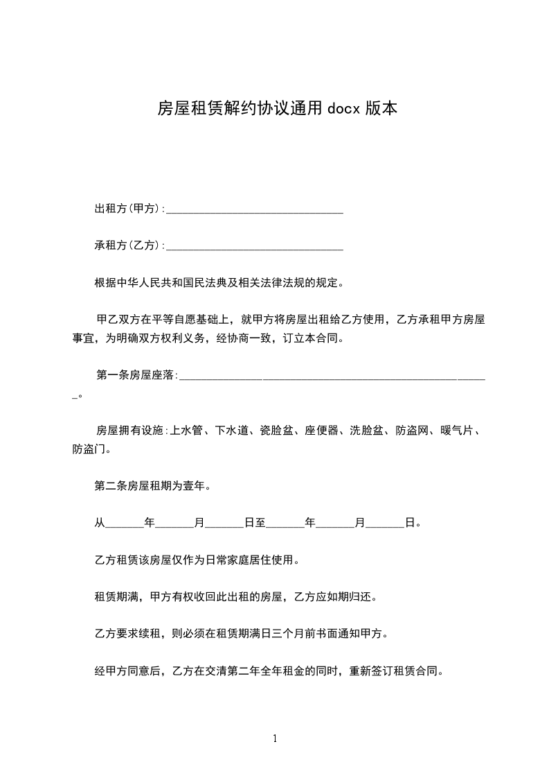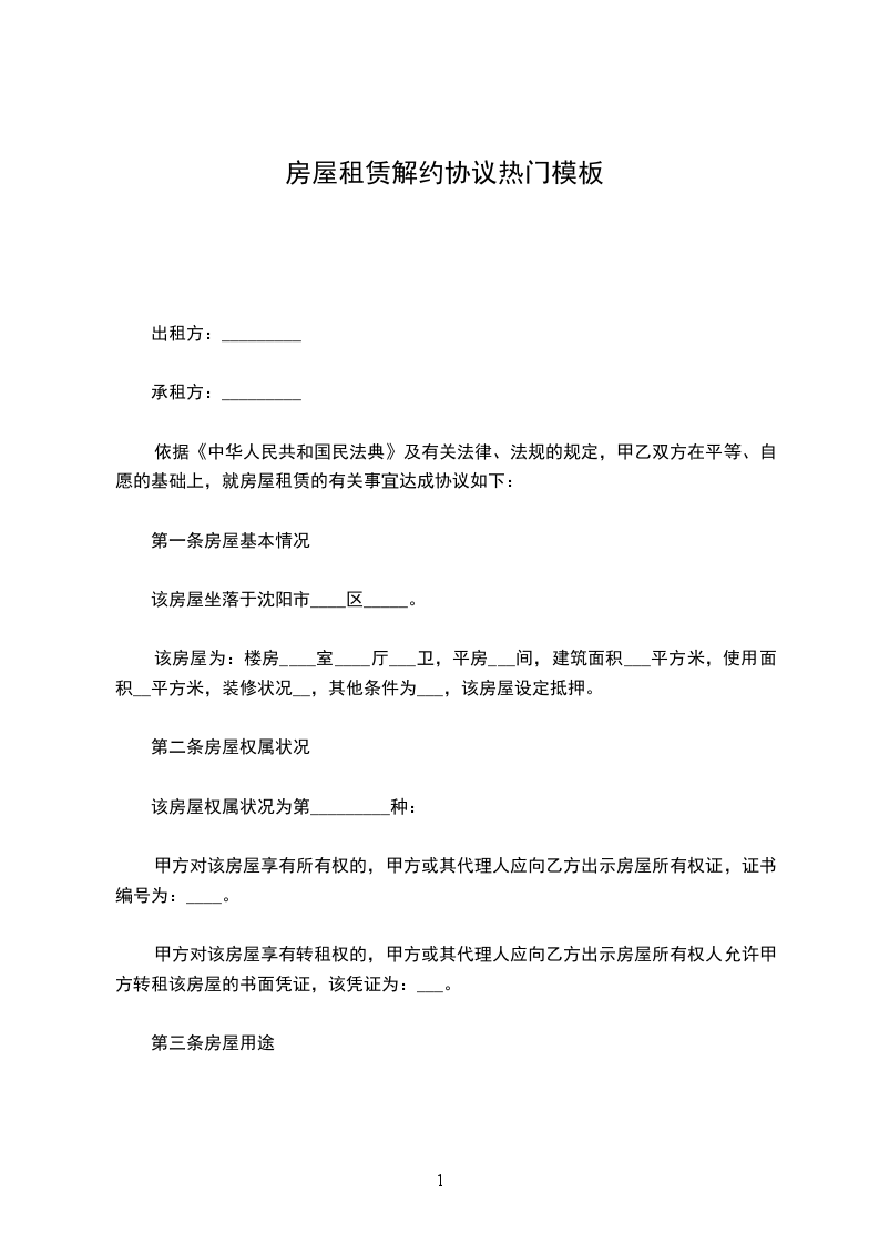 甲方__________与乙方__________原于__________年_____月_____日签订的合字第__________号_____________房屋租赁合同,房屋权证号_____________号,现因甲方欲出售乙方承租的私产房,依照法律规定乙方在同等条件下享有优先购买权,但是乙方放弃购买,因而无法继续履行合同,经双方协商同意,该房屋租赁合同于__________年_____月_____日予以解除。因解除合同给______方造成损失计__________元,由______方负责赔偿。赔偿金自__________年_____月_____日起至__________年_____月_____日止分______次付清,特此协议。