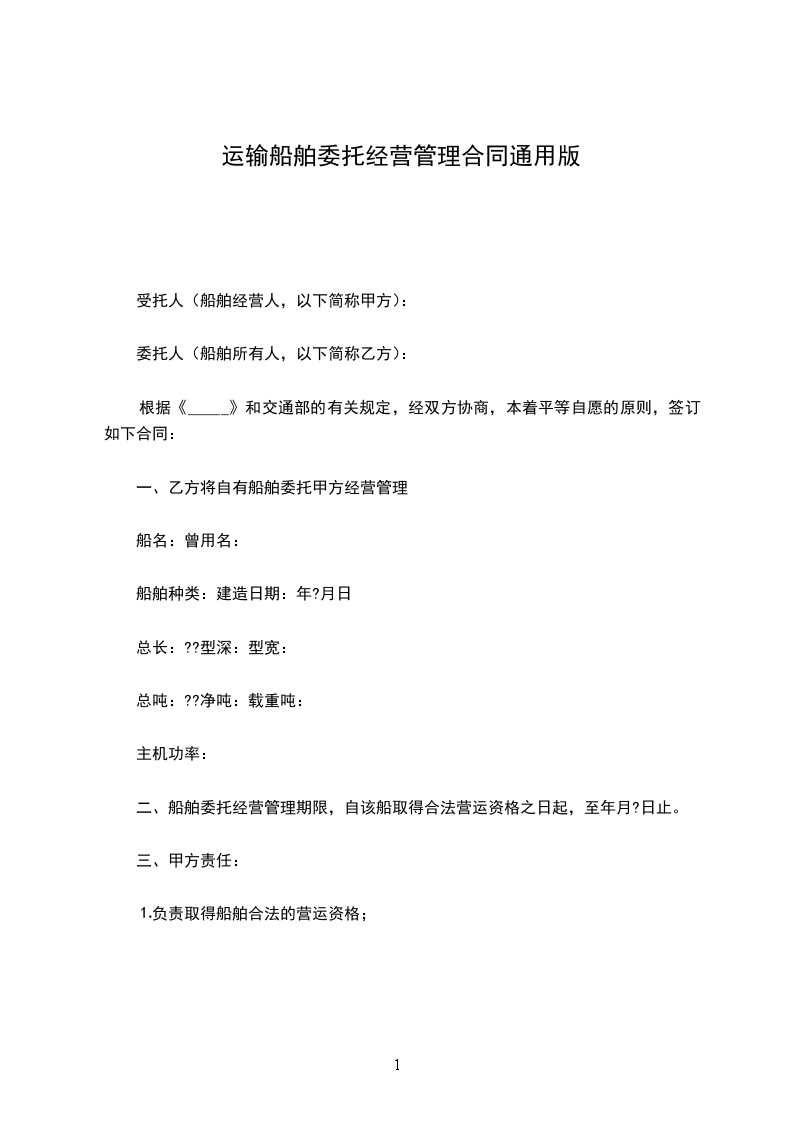 二、船舶委托经营管理期限,自该船取得合法营运资格之日起,至年月?日止。