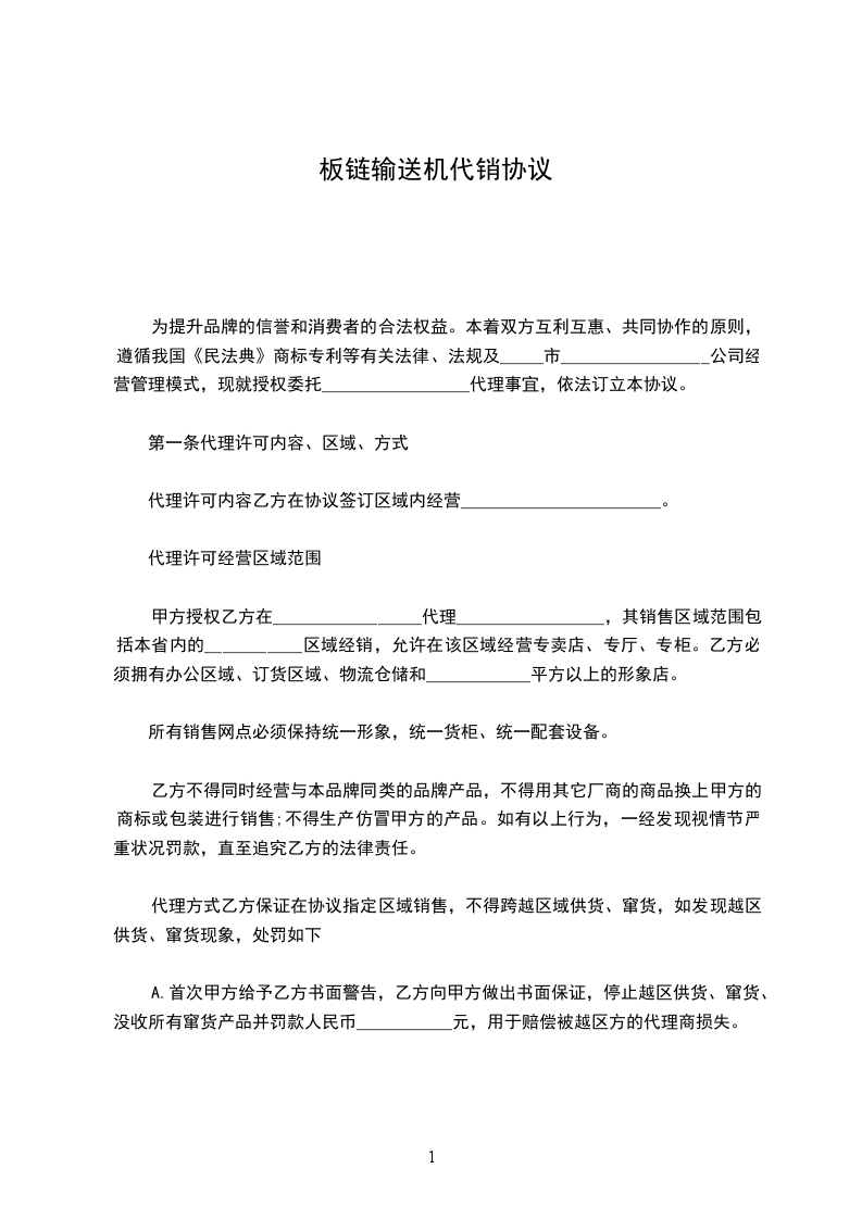 板链输送机代销协议