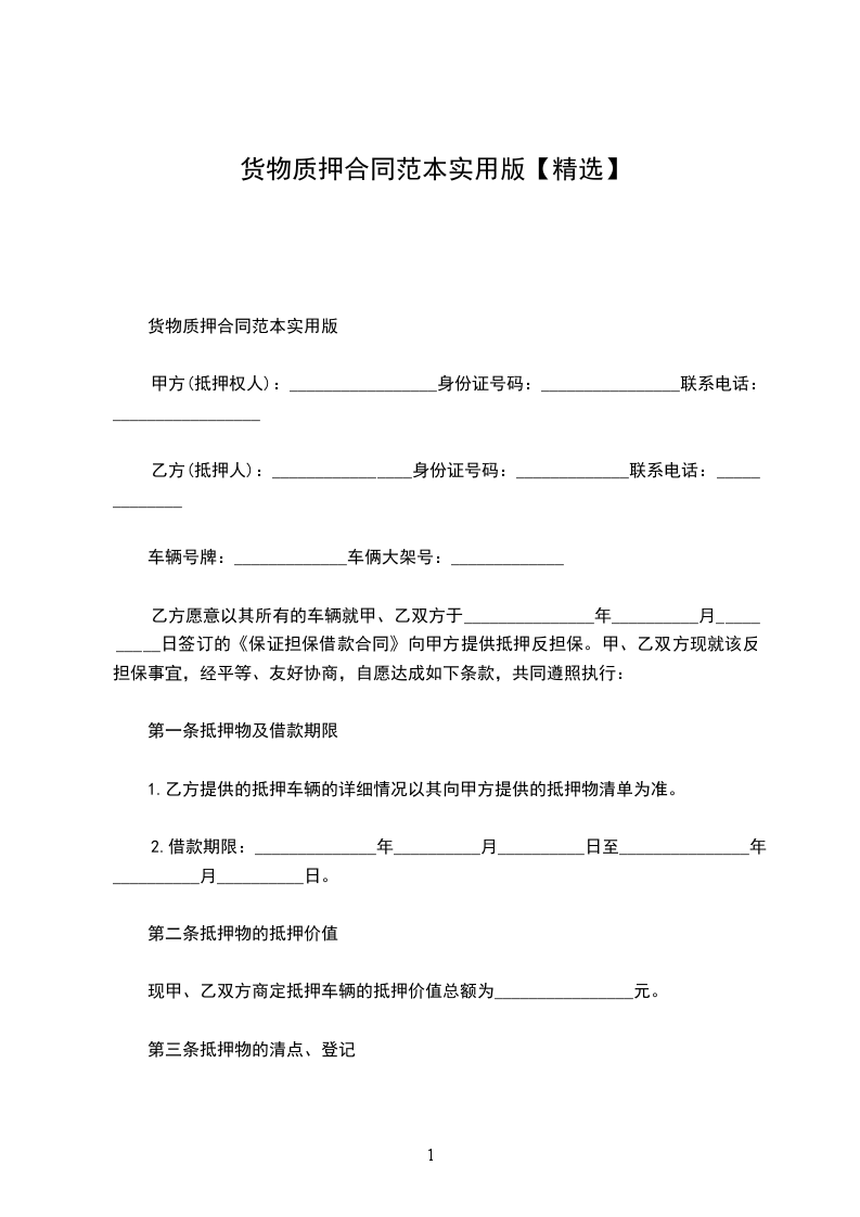 货物质押合同实用版