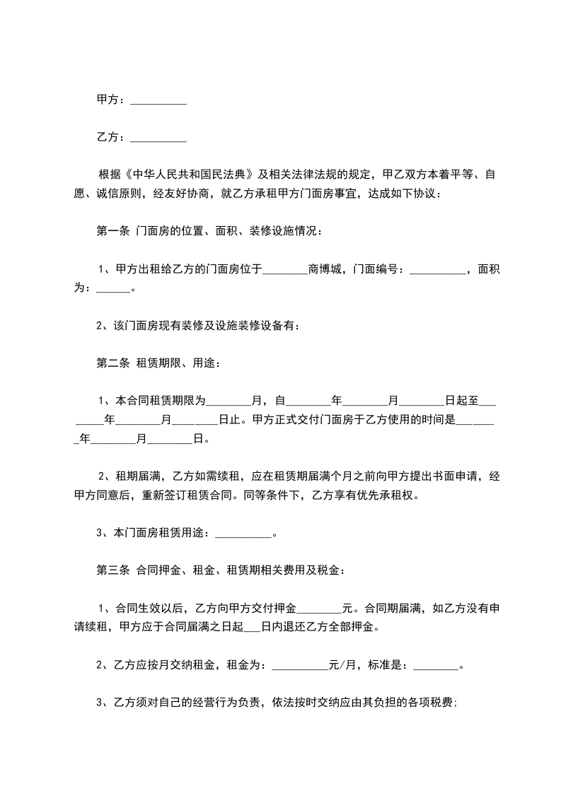 1:甲方将产权所有位于:_____市_____县_____街_____巷_____号的门面房屋租赁给乙方,房屋建筑面积________平方米,实际使用面积__________平方米。