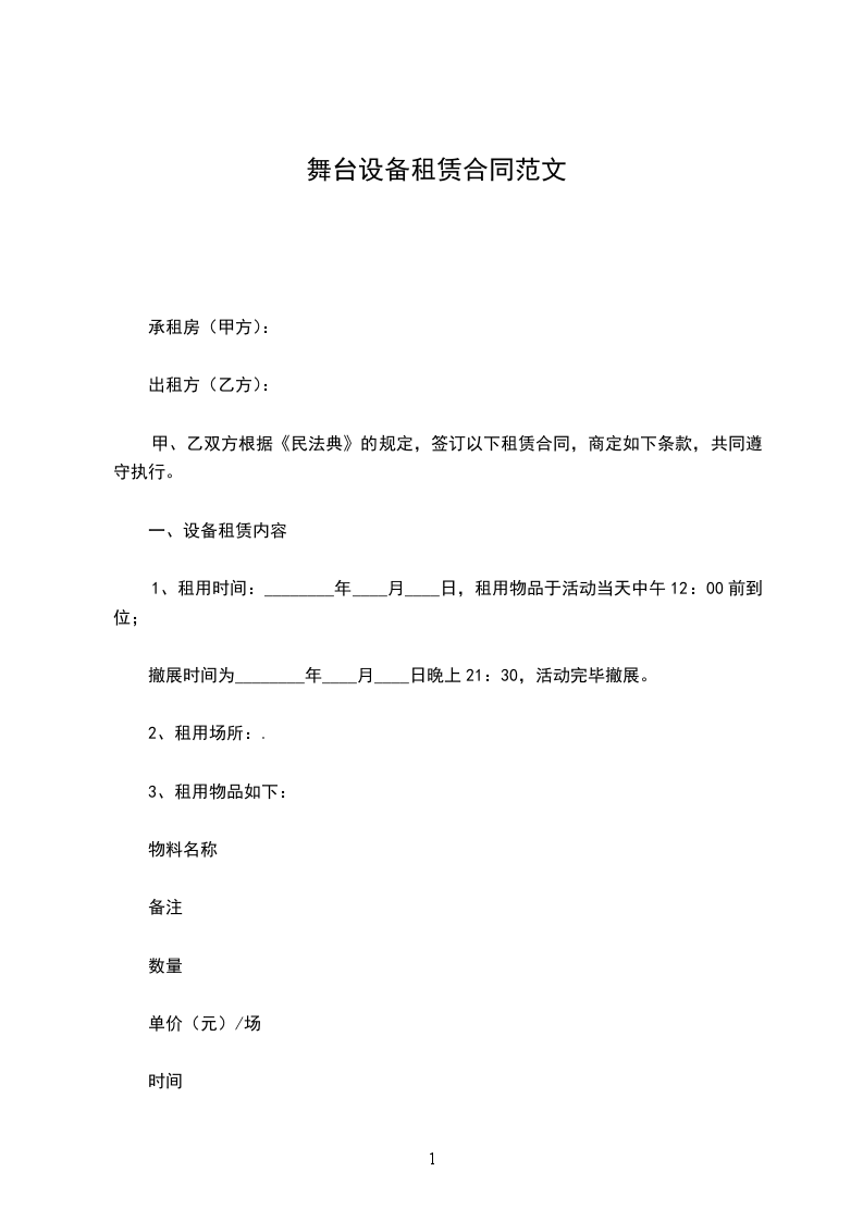 1、租用时间:________年____月____日,租用物品于活动当天中午12:00前到位;
