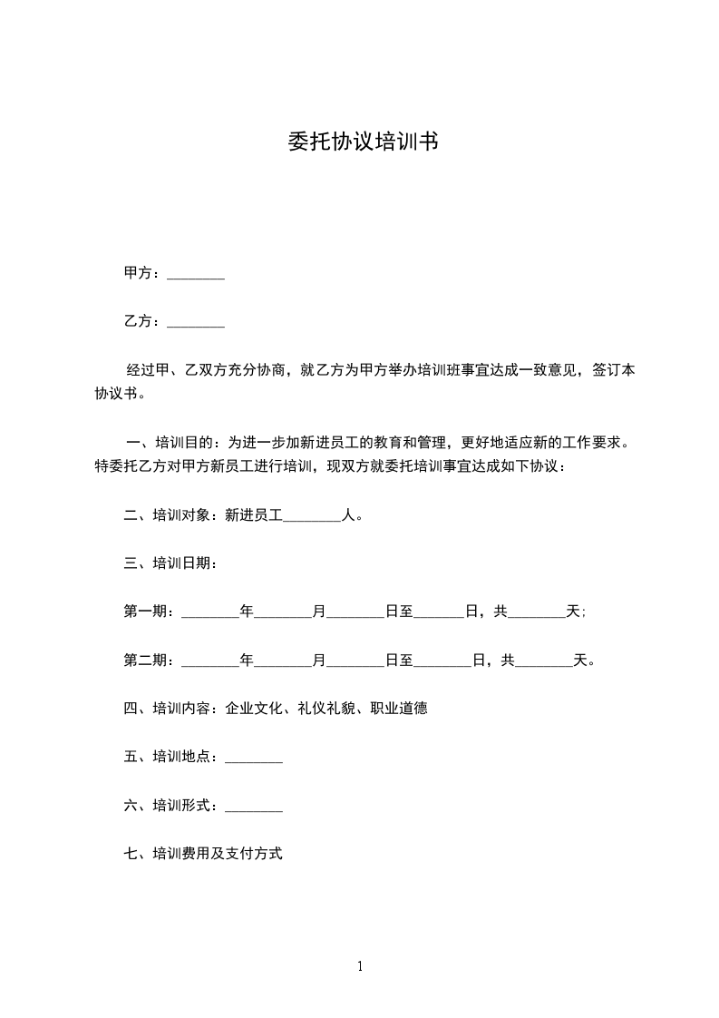 委托培训单位:____,以下简称乙方;