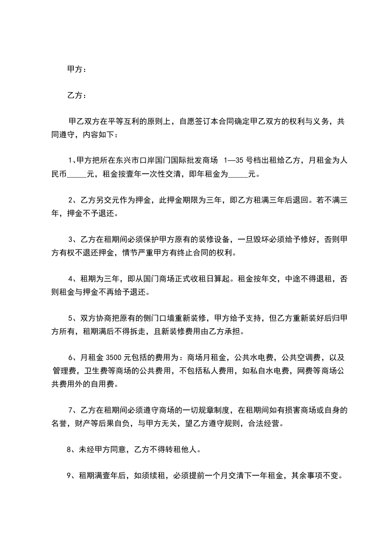 3.在租用期内,甲方必须确保乙方的正常居住,不得将乙方租用的档口转租(卖)给任何第三者;或在租赁期内房租加价;