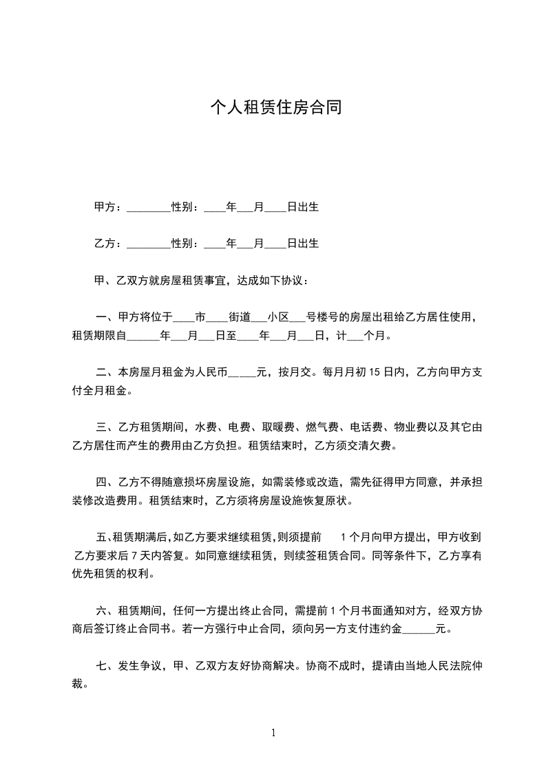 出租方:______(以下简称甲方)