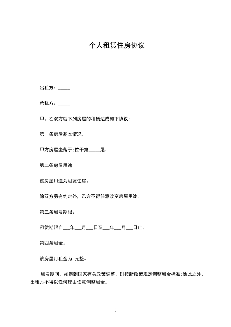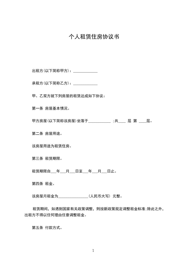 1、该房屋租赁期共一年。自________年____月____日起至________年____月____日止。