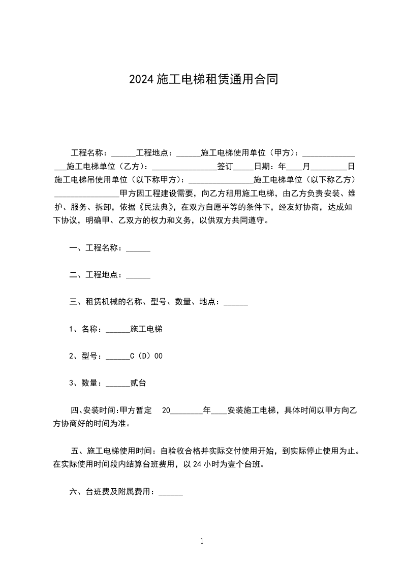 每部电梯每年度(12个月)元,电梯共部,每年度电梯租赁费共计元;