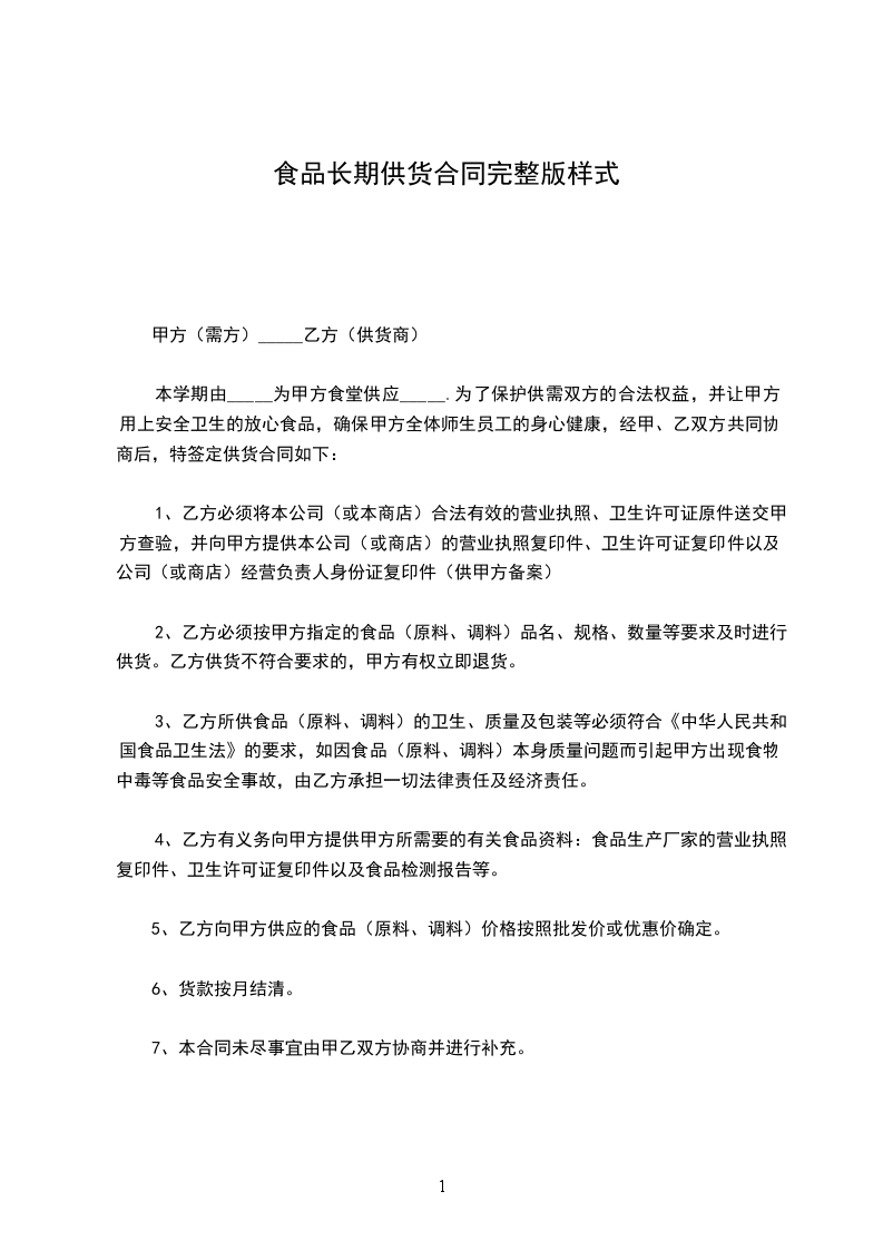 本学期由_____为甲方食堂供应_____.为了保护供需双方的合法权益,并让甲方用上安全卫生的放心食品,确保甲方全体师生员工的身心健康,经甲、乙双方共同协商后,特签定供货合同如下: