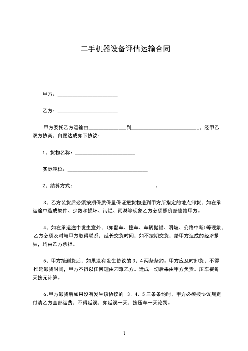 机器设备评估代销协议