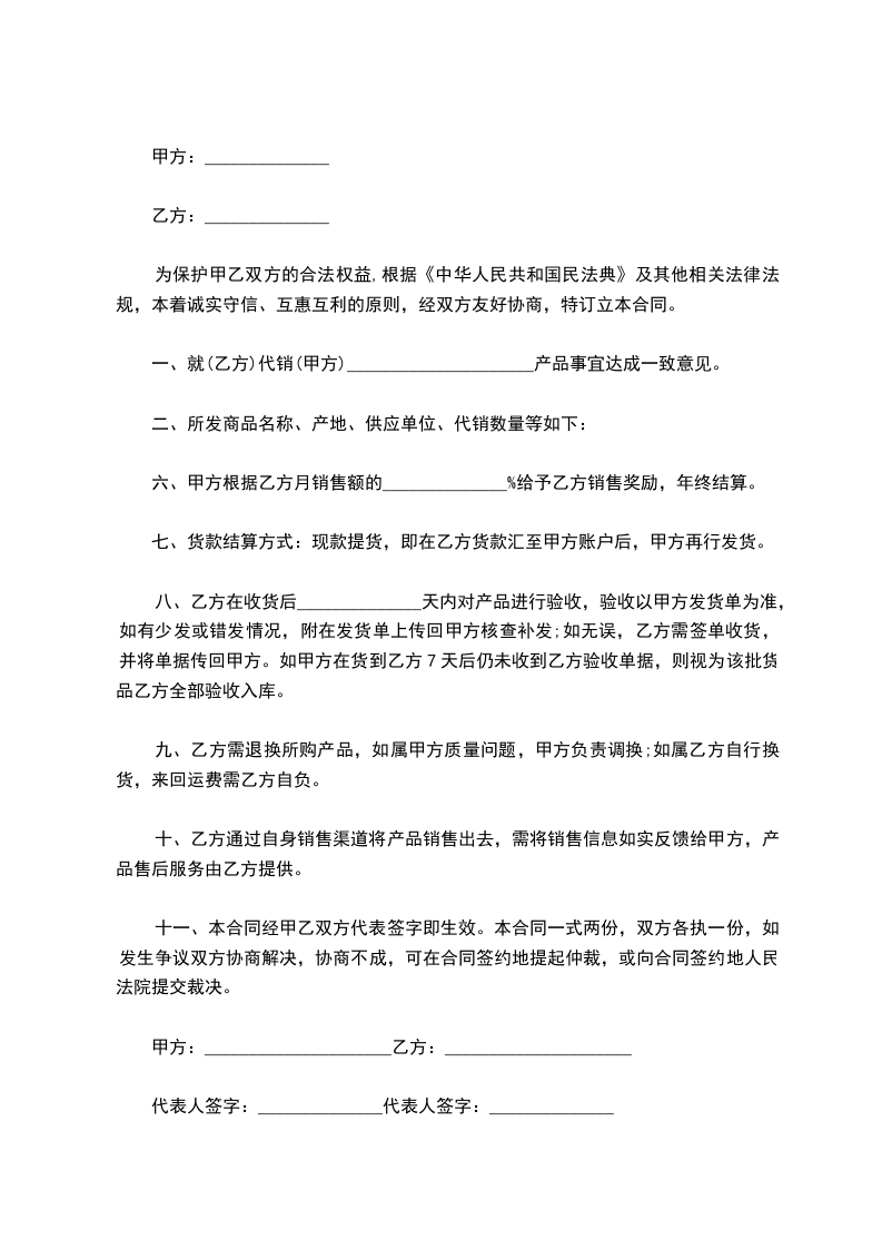 4、乙方购进的产品如果销售不畅,随时可调换别的产品。