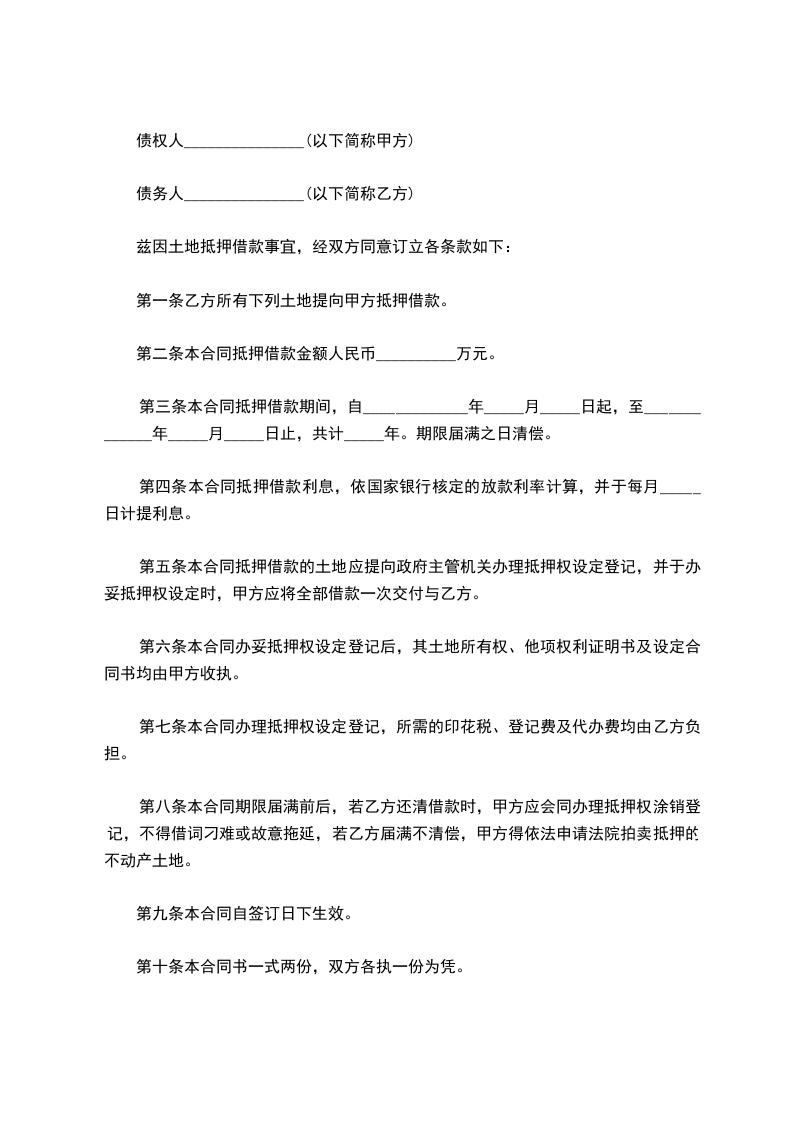 兹因土地抵押借款事宜,经双方同意订立各条款如下: