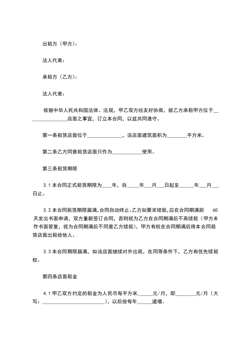 1、甲方将其拥有的座落于街号门面房出租给乙方用于经营。该门面建筑面积共平方米。