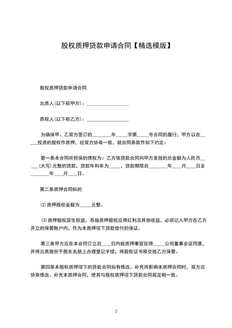 (2)质押股权金额为_____元整。