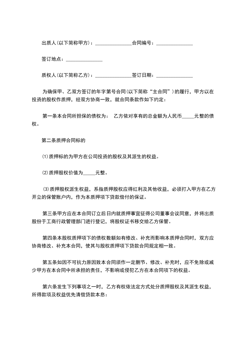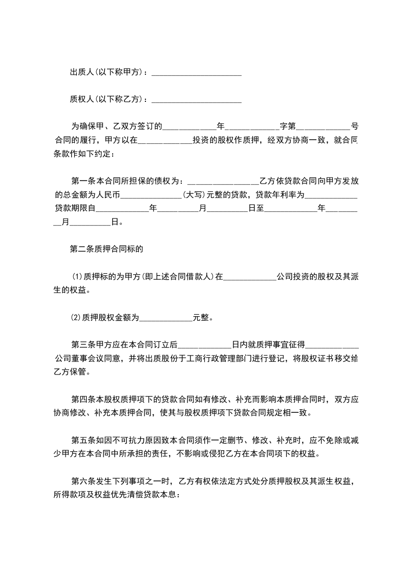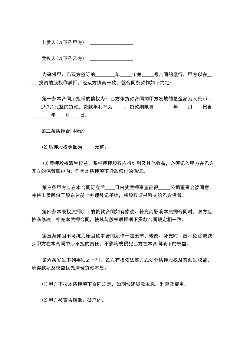 (2)质押股权金额为_____元整。
