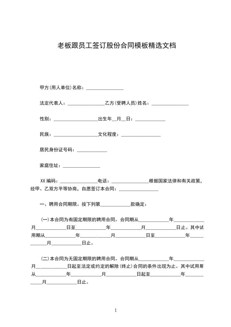 一、聘用合同期限。按下列第_____________款确定:
