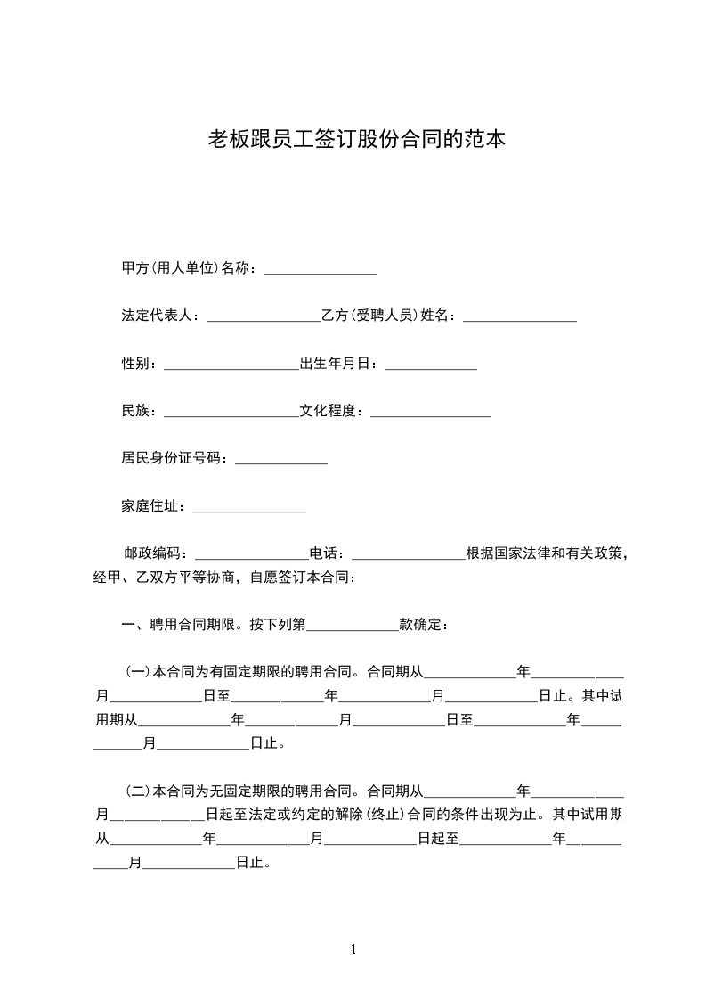 (一)本合同为有固定期限的聘用合同。合同期从_____________年_____________月_____________日至_____________年_____________月_____________日止。其中试用期从_____________年_____________月_____________日至_____________年_____________月_____________日止。