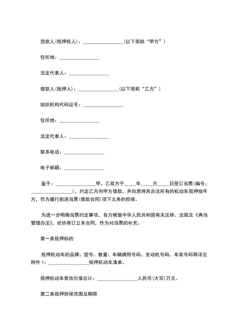 鉴于:_________________甲、乙双方于_____年_____月_____日签订当票(编号:_________________),约定乙方向甲方借款,并自愿将其合法所有的机动车抵押给甲方,作为履行前述当票(借款合同)项下义务的担保。