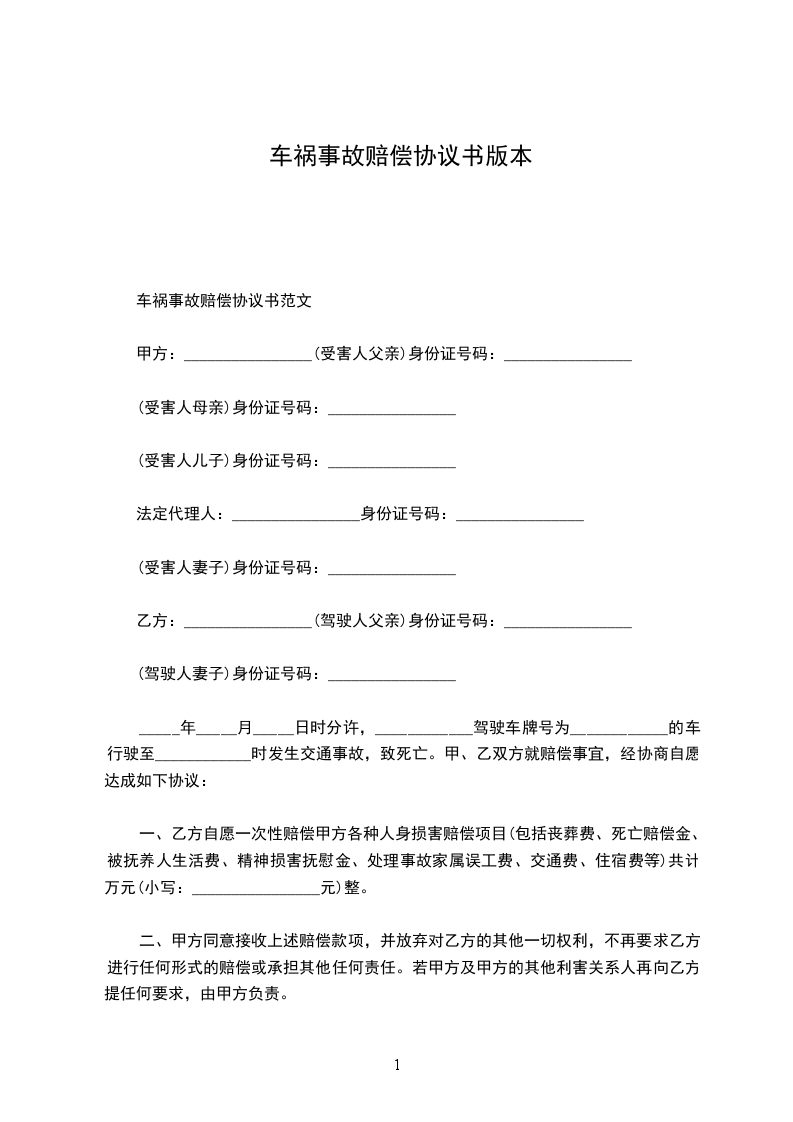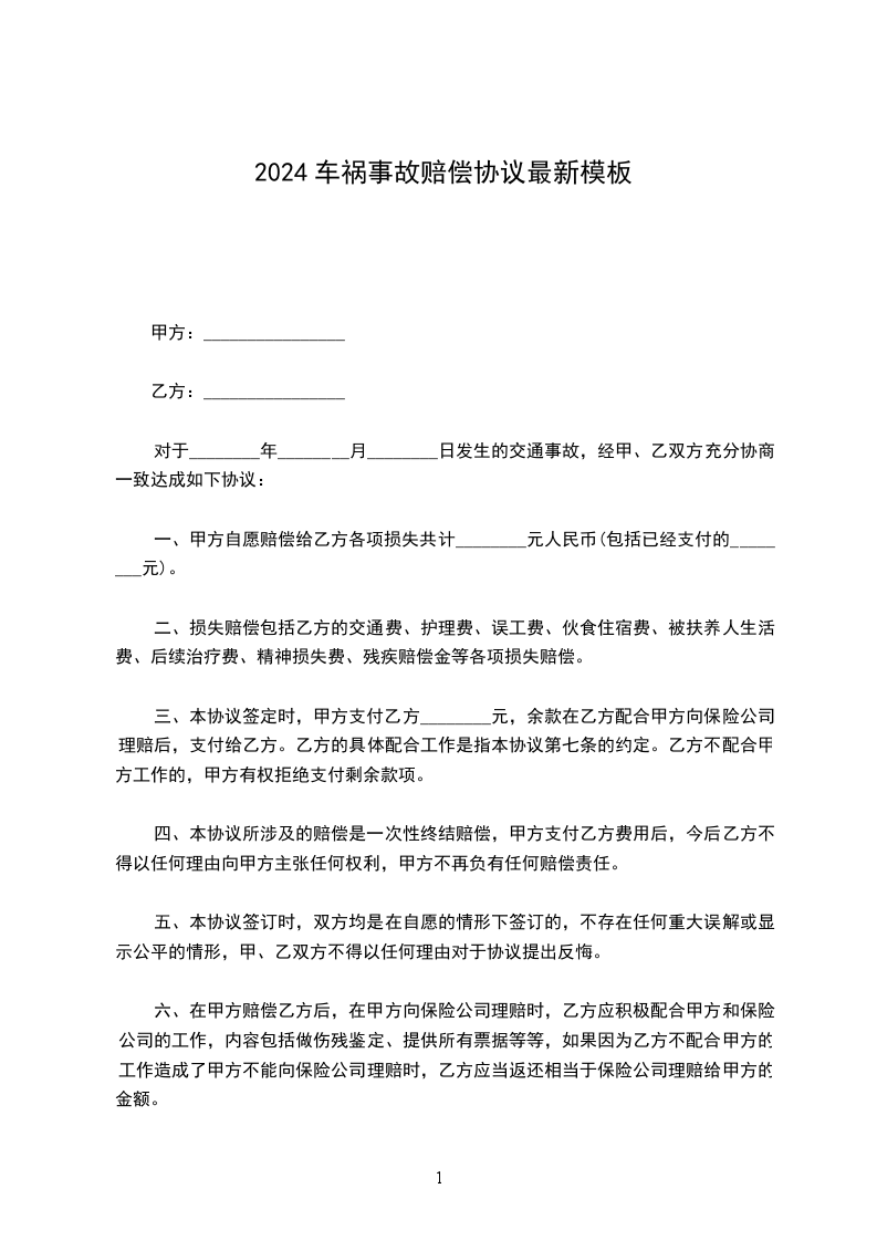 对于_____年_____月_____日发生的交通事故,经甲、乙双方充分协商一致达成如下协议: