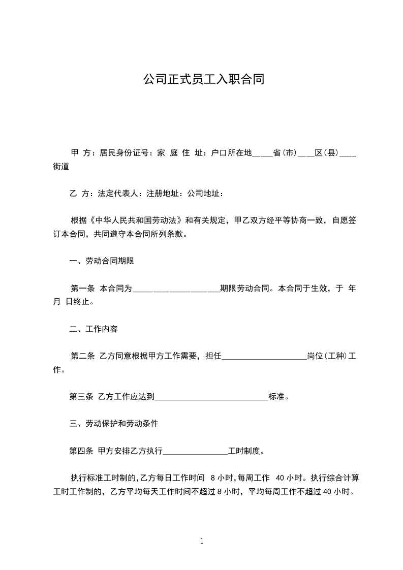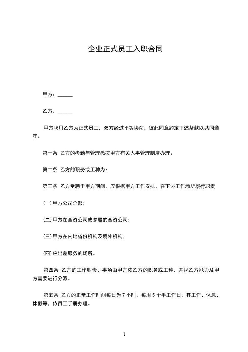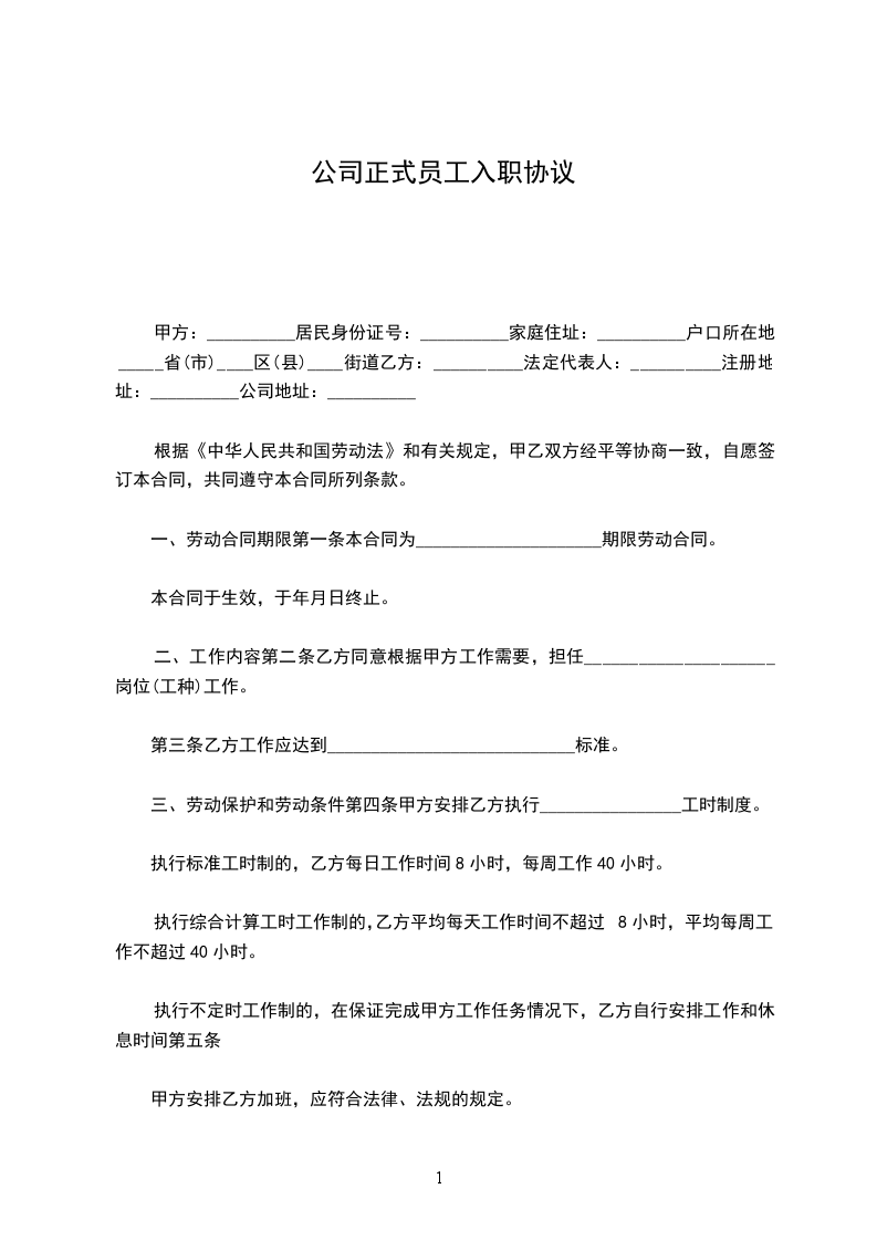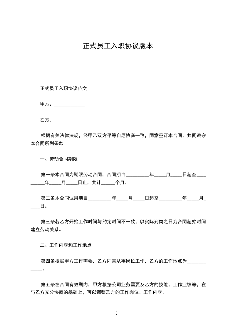 正式员工入职协议书