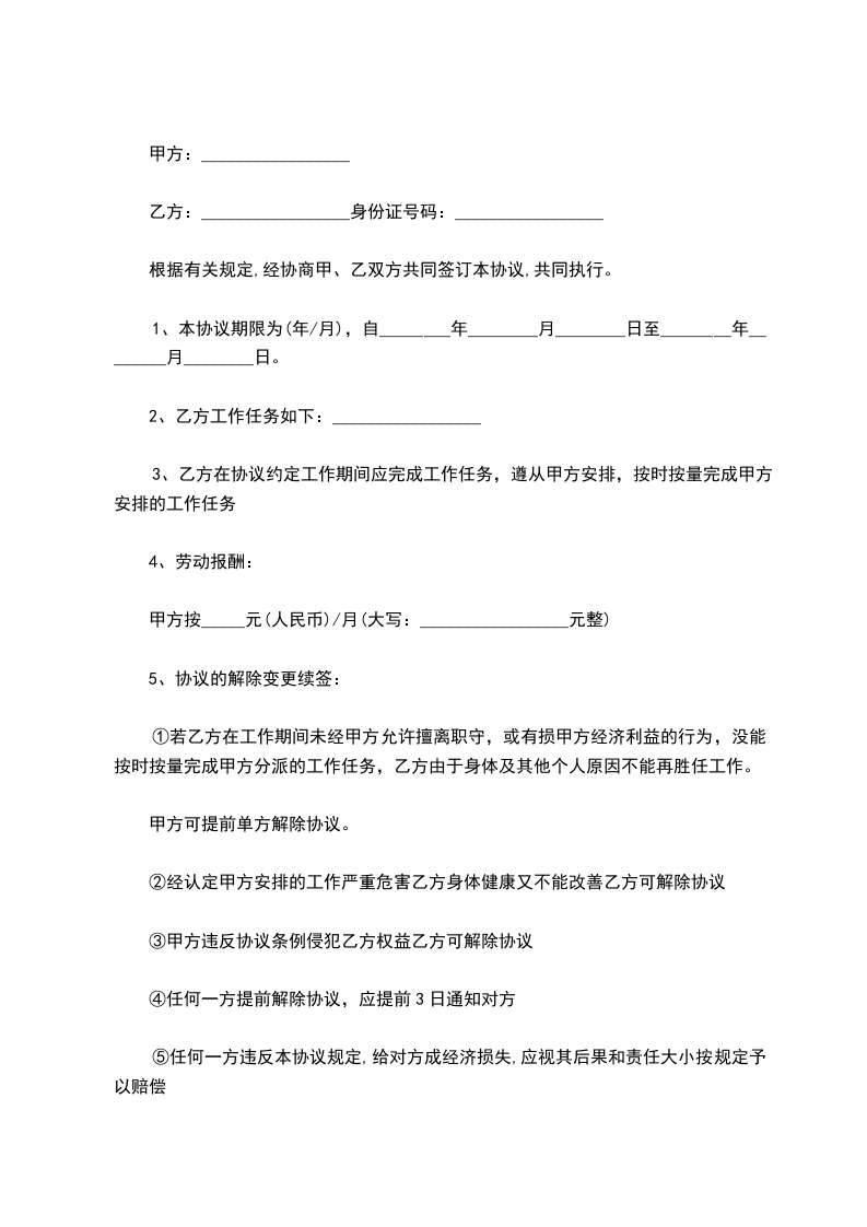 3、乙方在协议约定工作期间应完成工作任务,遵从甲方安排,按时按量完成甲方安排的工作任务