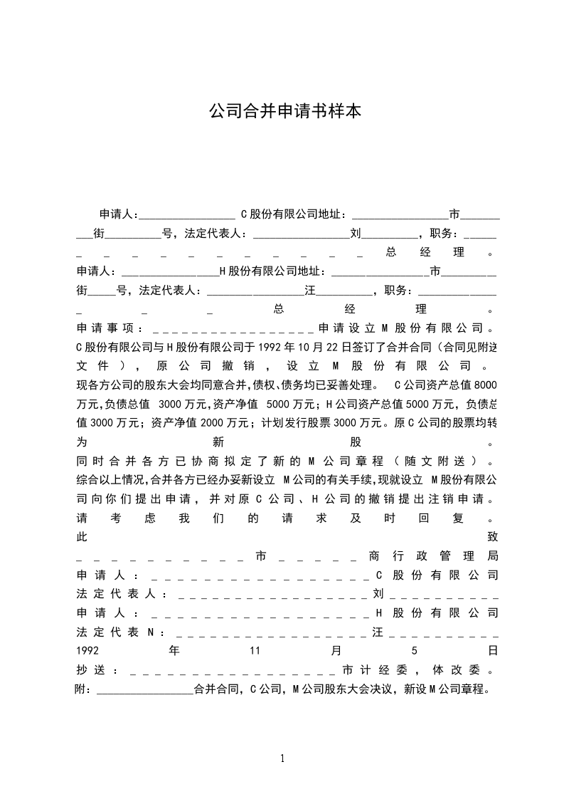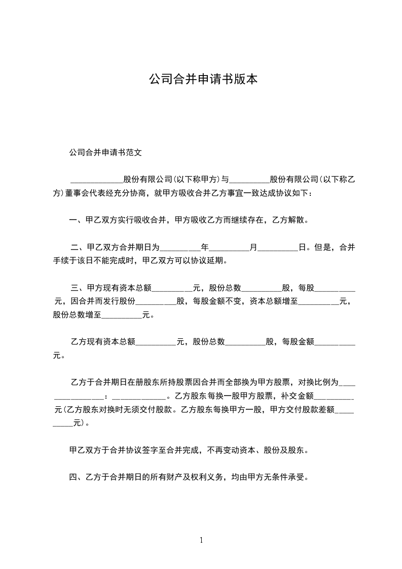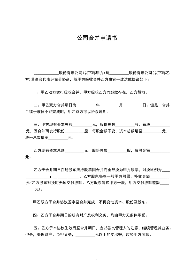 三、甲方现有资本总额__________元,股份总数__________股,每股__________元,因合并而发行股份__________股,每股金额不变,资本总额增至__________元,股份总数增至__________元。