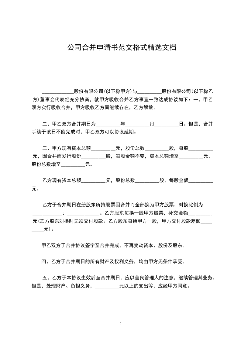 _____________股份有限公司(以下称甲方)与__________股份有限公司(以下称乙方)董事会代表经充分协商,就甲方吸收合并乙方事宜一致达成协议如下: