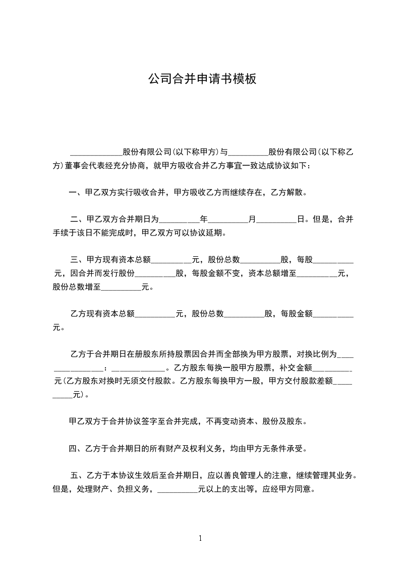 二、甲乙双方合并期日为__________年__________月__________日。但是,合并手续于该日不能完成时,甲乙双方可以协议延期。