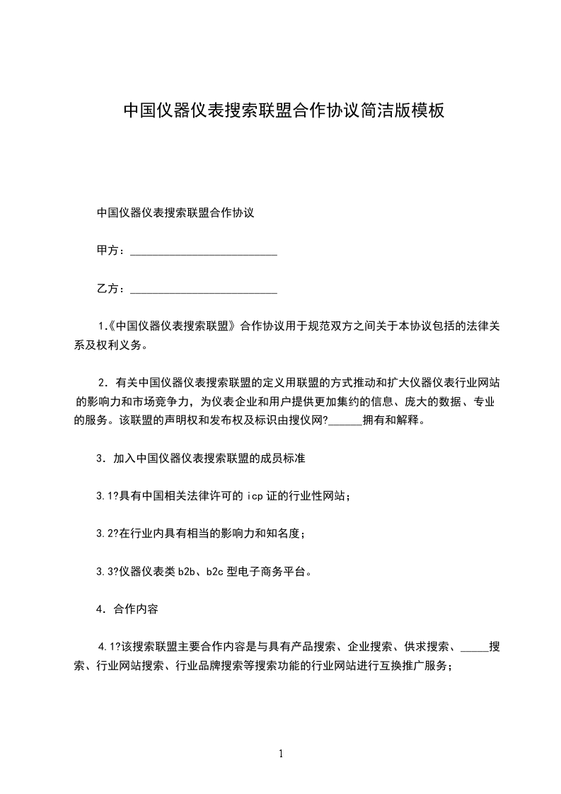 1.《中国仪器仪表搜索联盟》合作协议用于规范双方之间关于本协议包括的法律关系及权利义务。