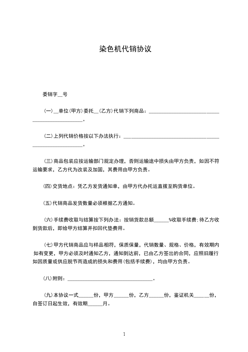 染色机代销协议