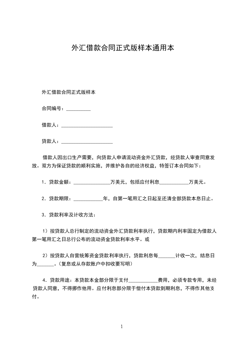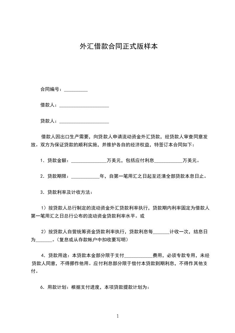2.贷款期限:____________年,自第一笔用汇之日起至还清全部贷款本息日止。