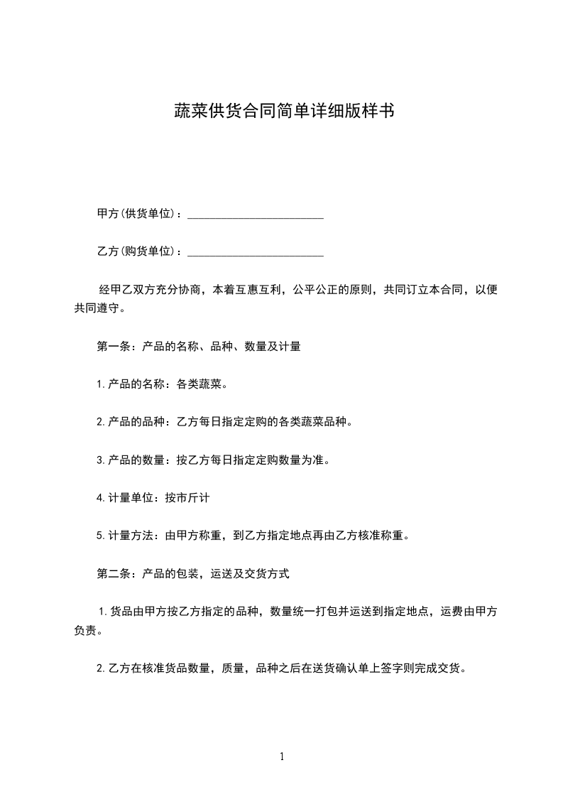 2.产品的品种:乙方每日指定定购的各类蔬菜品种。