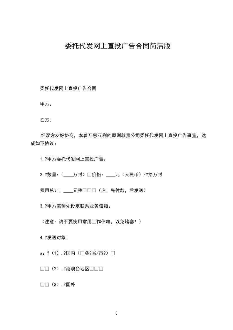 经双方友好协商,本着互惠互利的原则就贵公司委托代发网上直投广告事宜,达成如下协议: