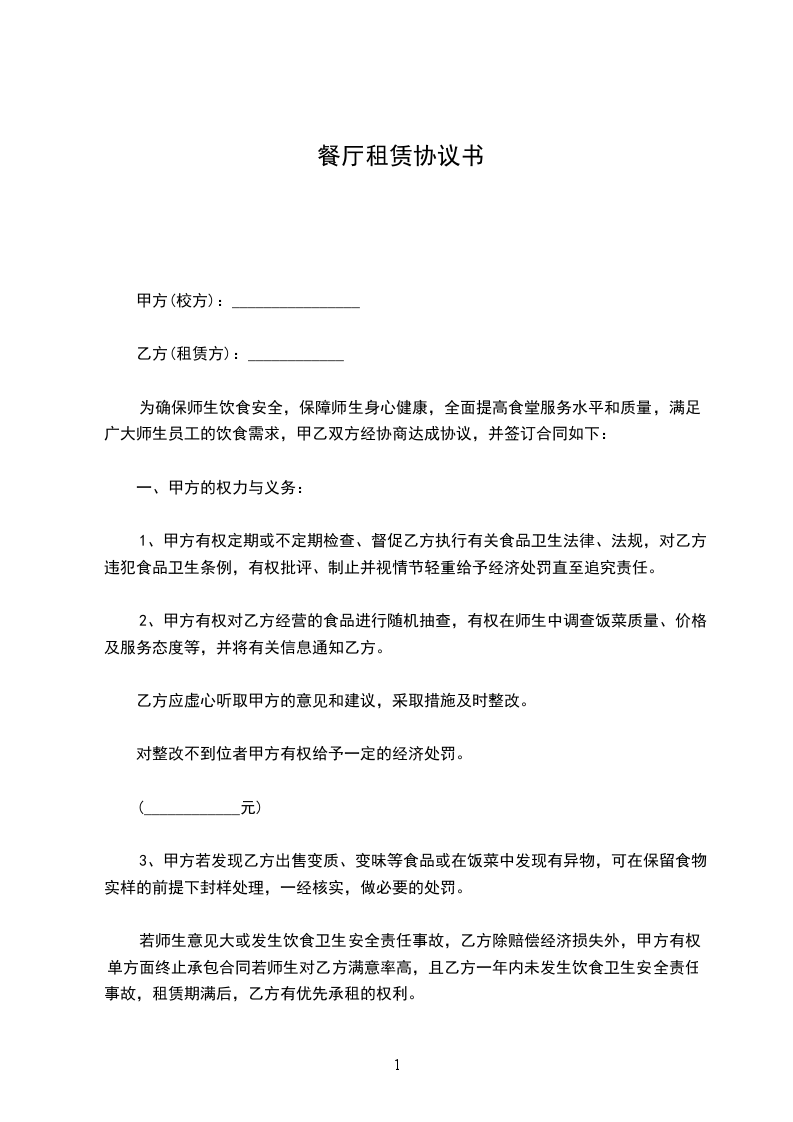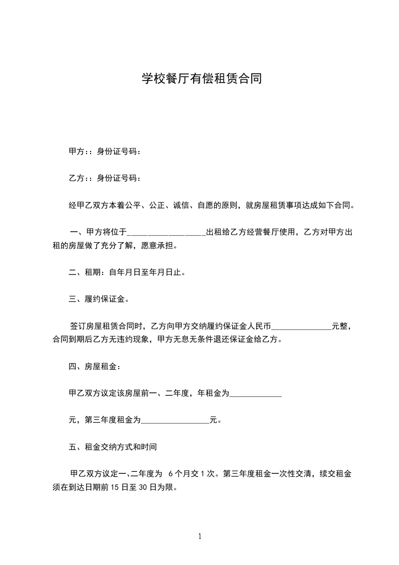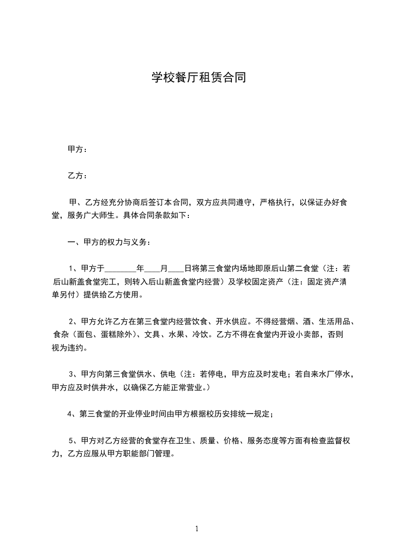 3、合同期满后,甲方所有固定资产应完好交还学校,否则甲方将按实际收取修理费或赔偿费。
