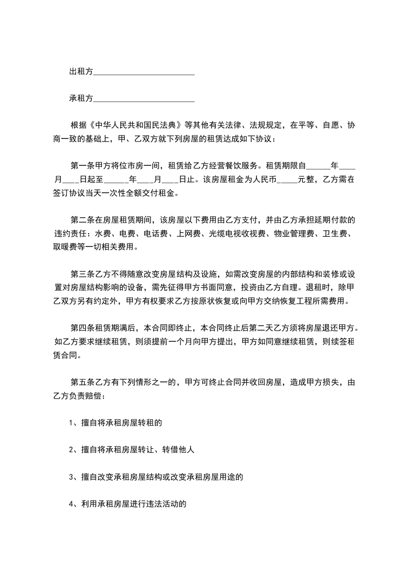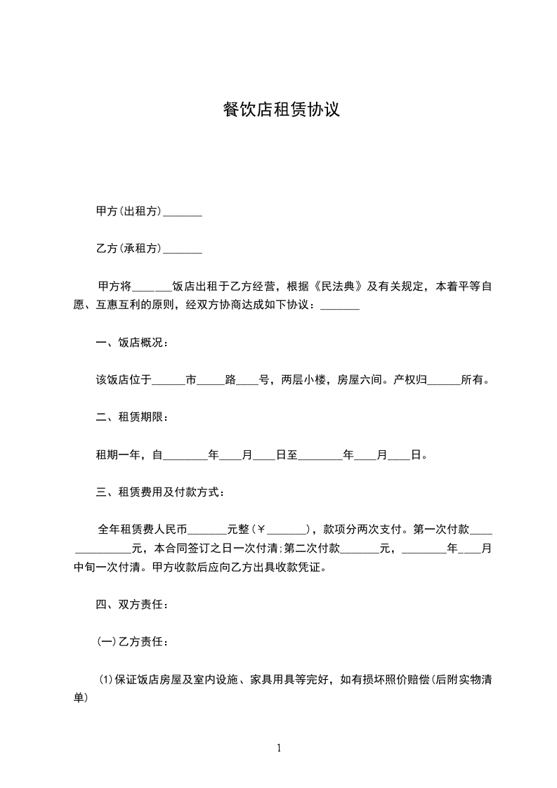 甲方将_______饭店出租于乙方经营,根据《民法典》及有关规定,本着平等自愿、互惠互利的原则,经双方协商达成如下协议:
